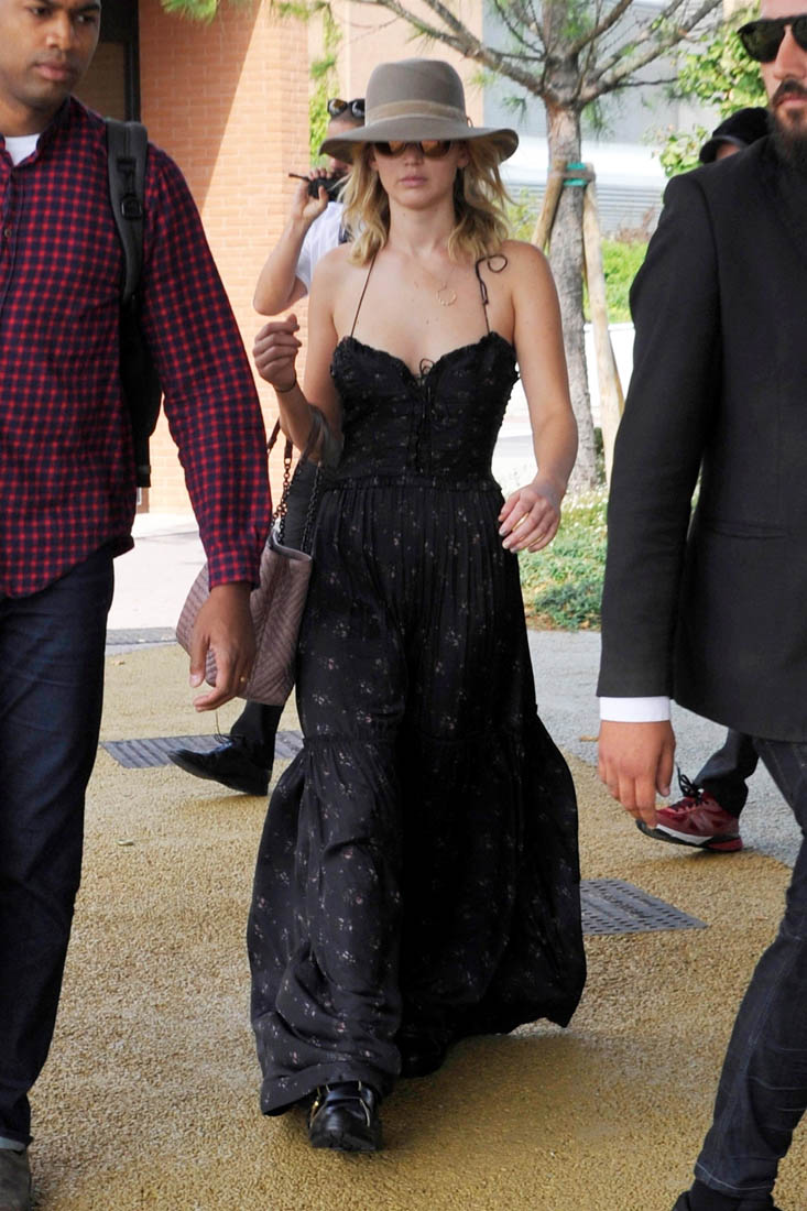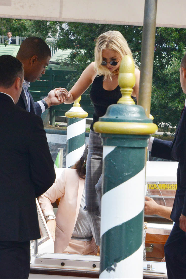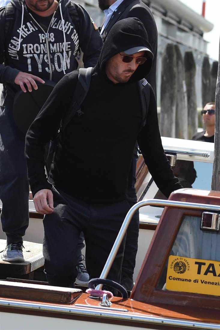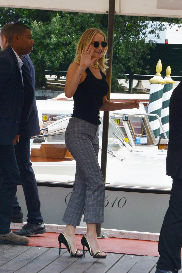 Sarah is seeing it a week from now here in Toronto. She’ll have more in her review. For now, here’s Darren, with the cast, at the photo call today. Darren and Jennifer Lawrence arrived together in Venice three days ago, careful not to be photographed in the same frame. As you can see, they did their best not to stand next to each other on the carpet. Maybe at the gala tonight we’ll get a shot of them side-by-side? I’m not all that hard up for it, actually. Michelle Pfeiffer is enough for me. Also? Darren’s got Johnny Depp’s scarf affliction.
