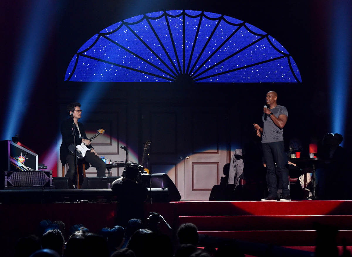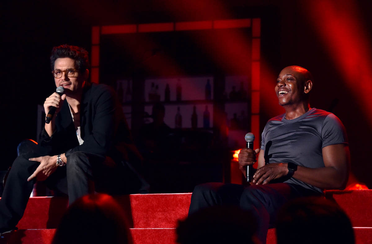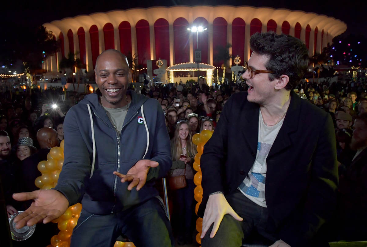 Attached - Dave Chapelle on stage with John Mayer on New Year's Eve.