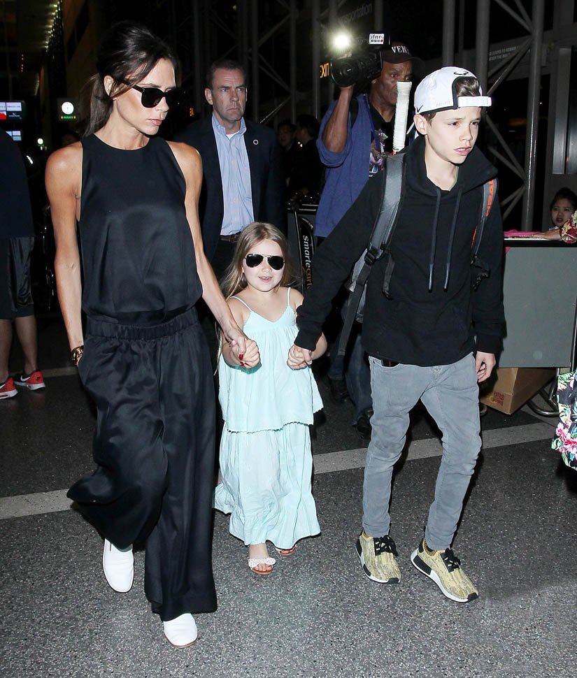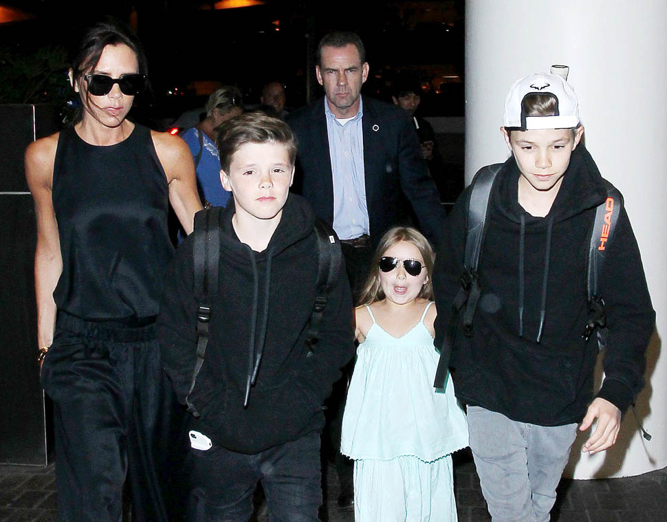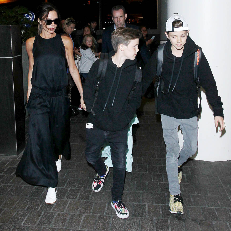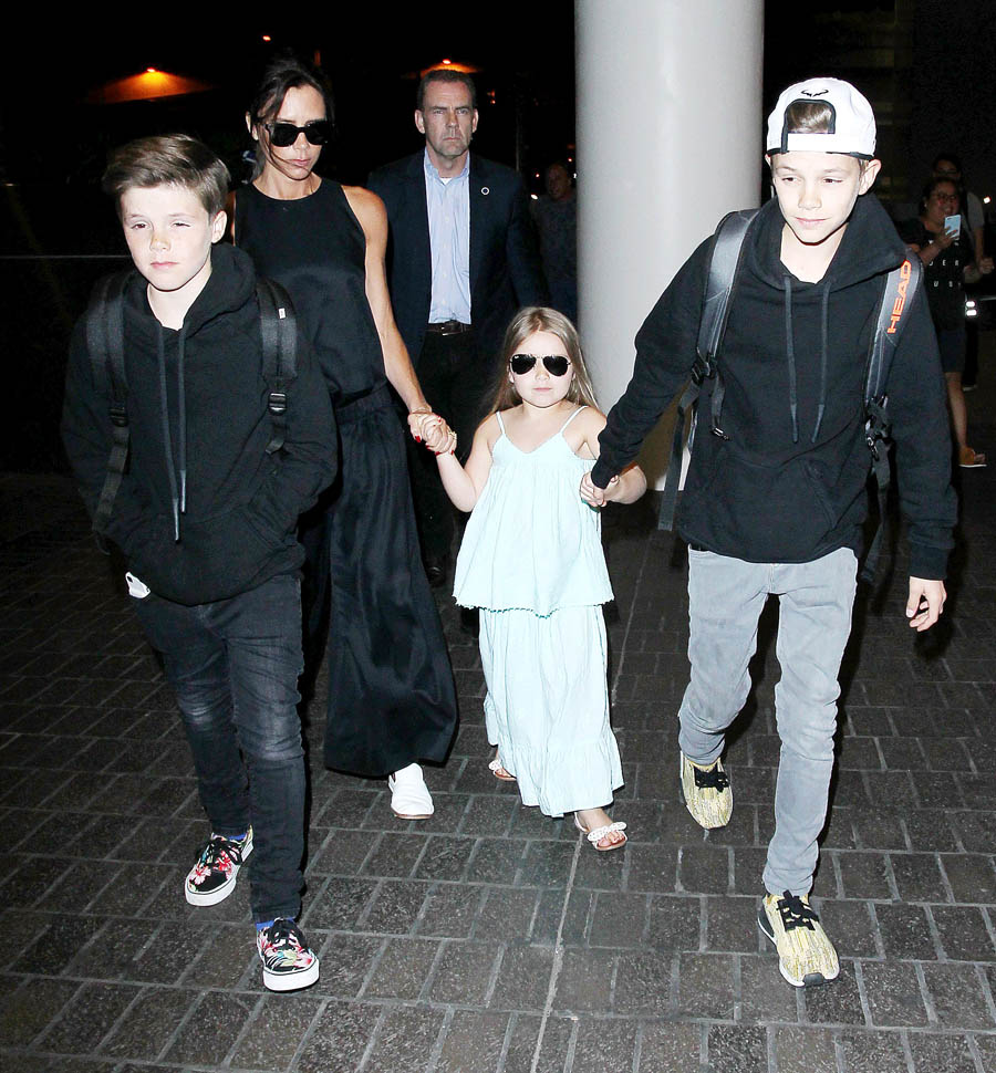 Attached - Victoria at LAX with Romeo, Cruz, and Harper yesterday, and Brooklyn at Coachella on the weekend.