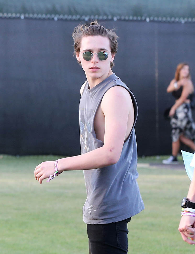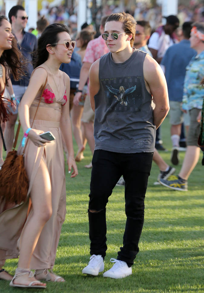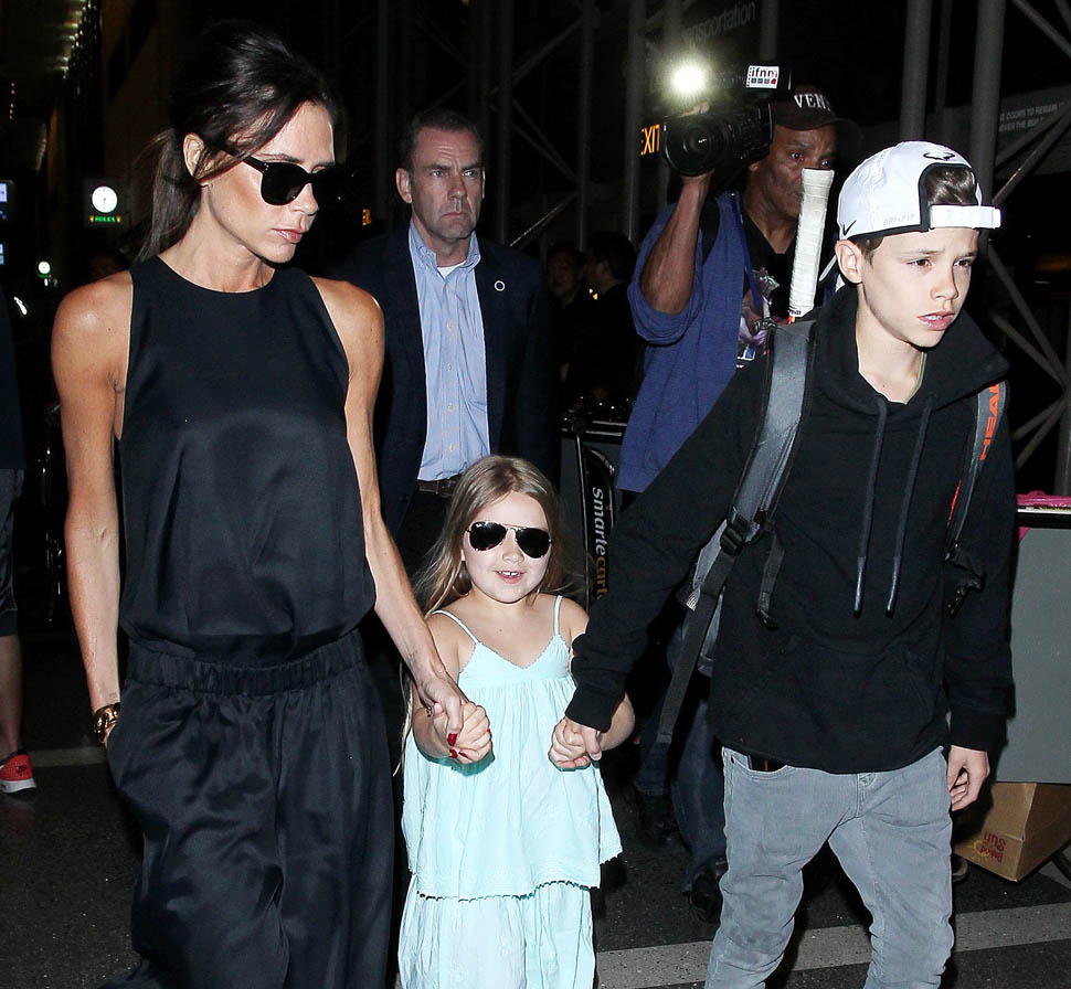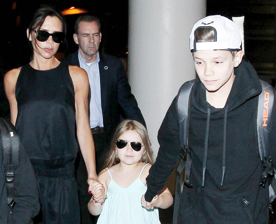 Attached - Victoria at LAX with Romeo, Cruz, and Harper yesterday, and Brooklyn at Coachella on the weekend.