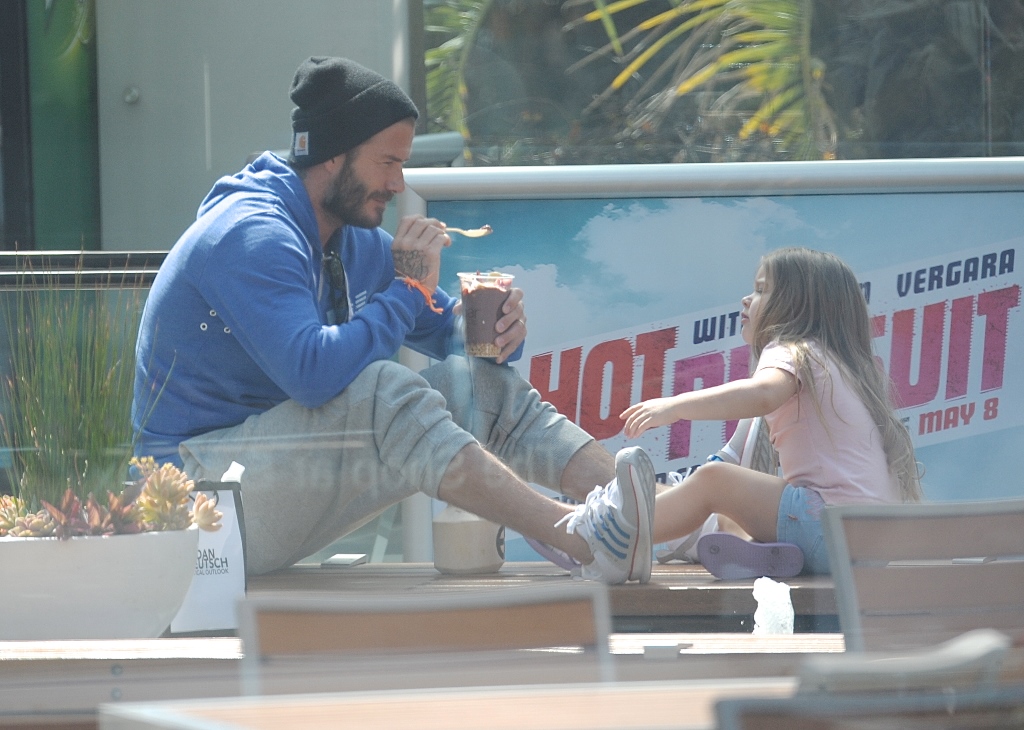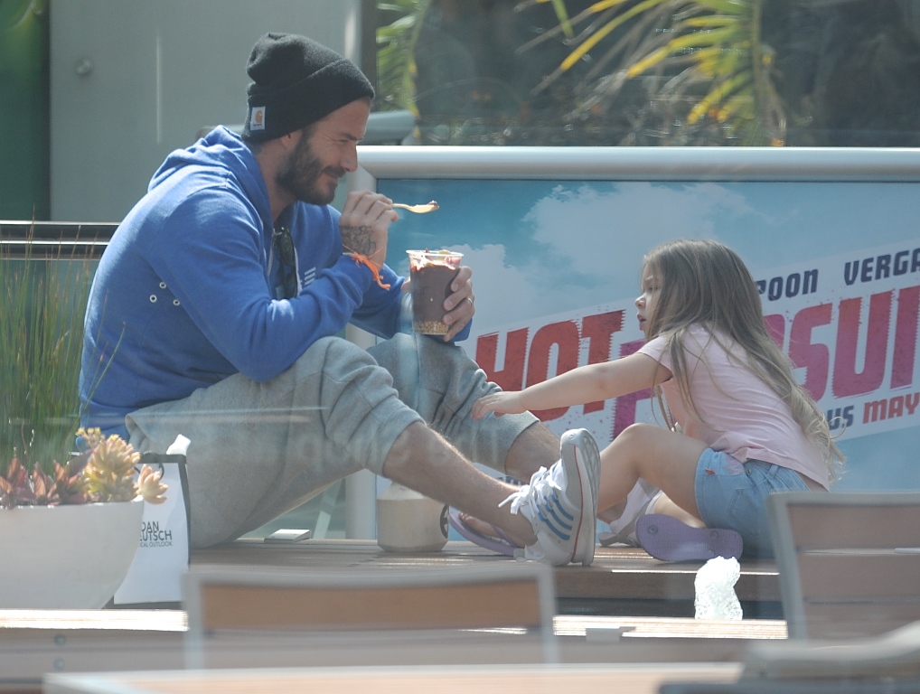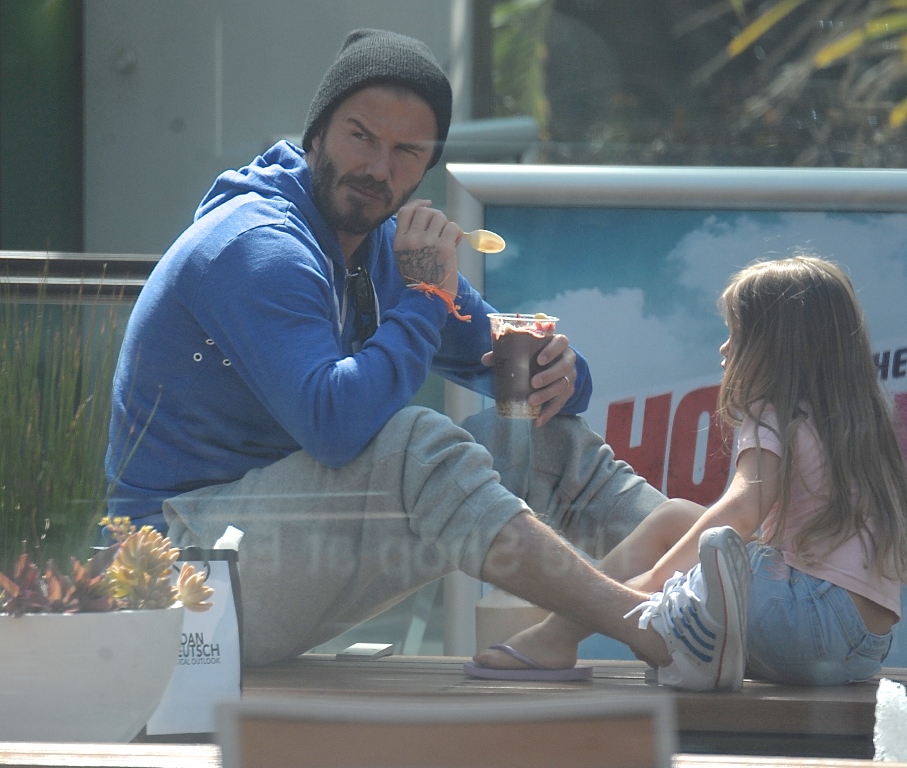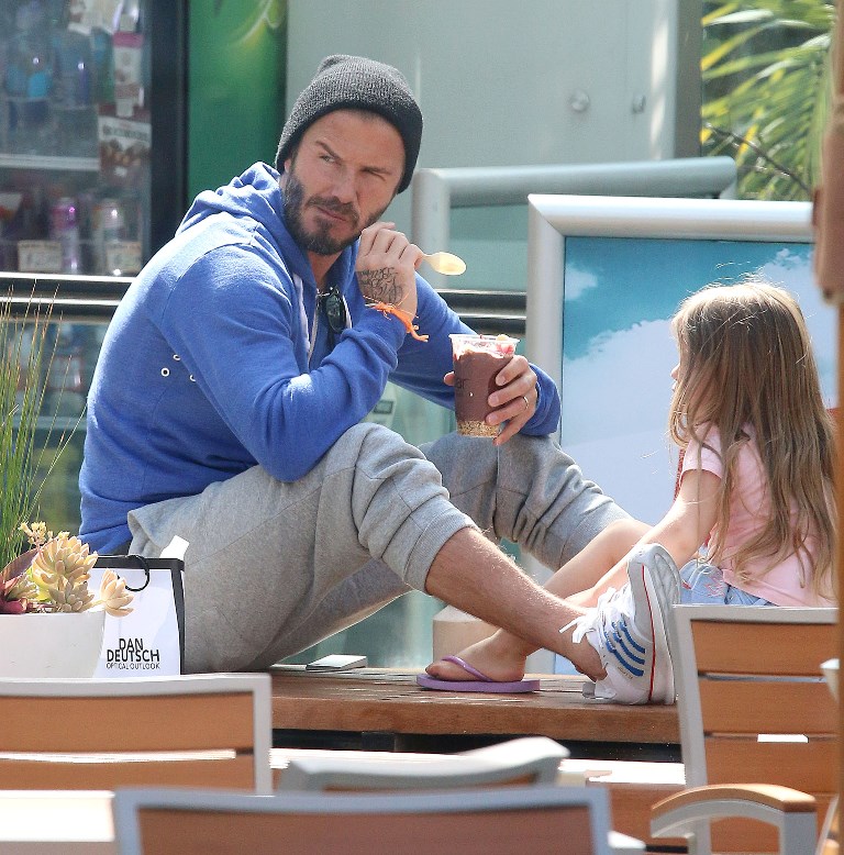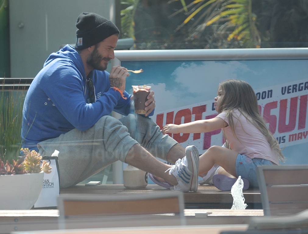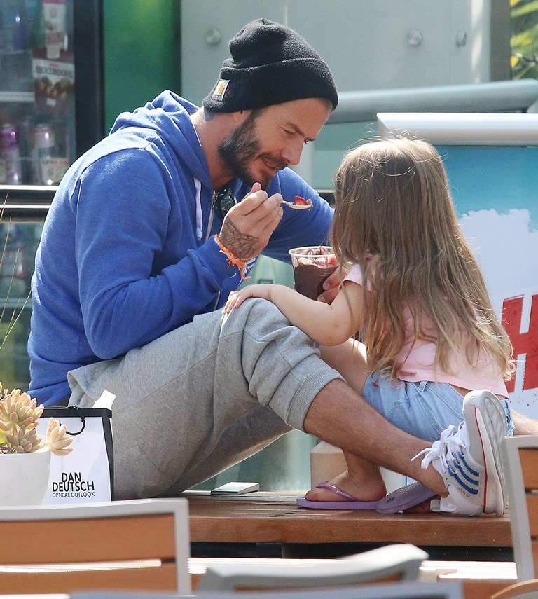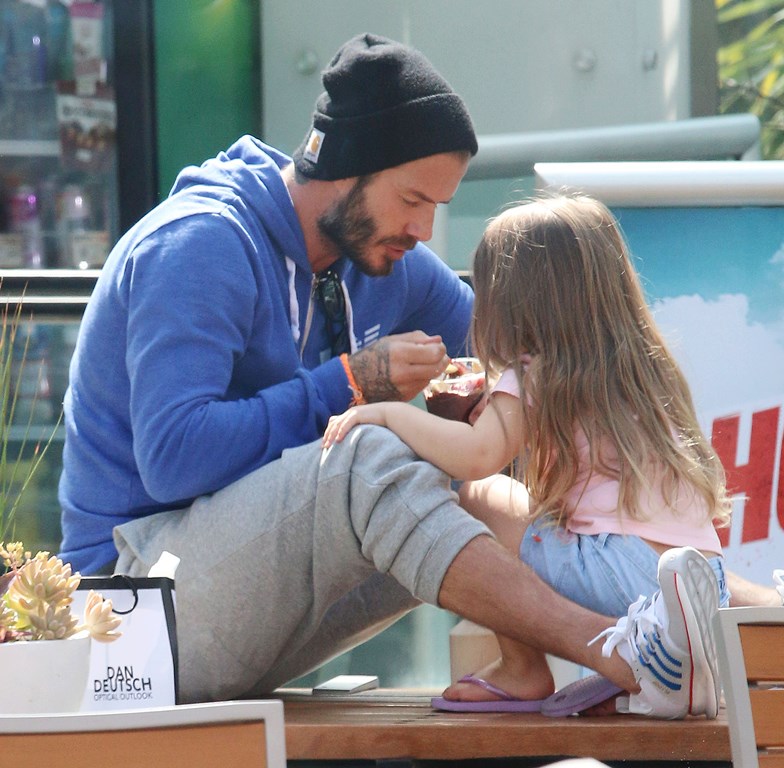 Not even I’m immune to how cute these pictures of H7 and her dad are as they share ice cream. And she looks pretty demanding about her ice cream time too. Like there’s no asking nicely when it comes to H7’s next spoonful. David Beckham is her ice cream bitch. It must be nice to know you’re still needed by one of your children.