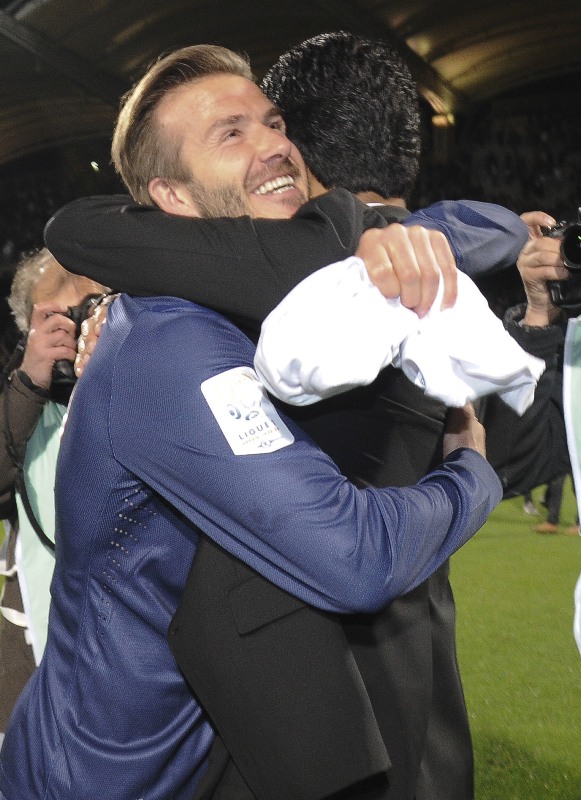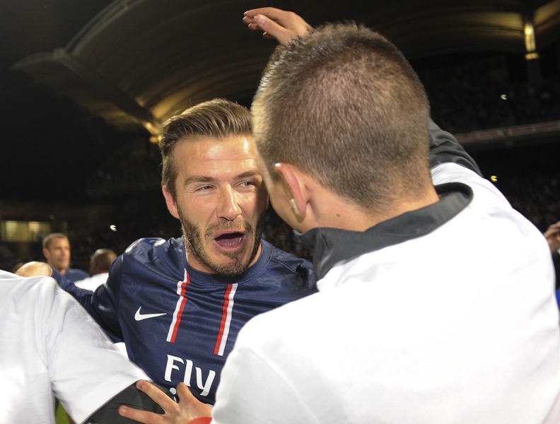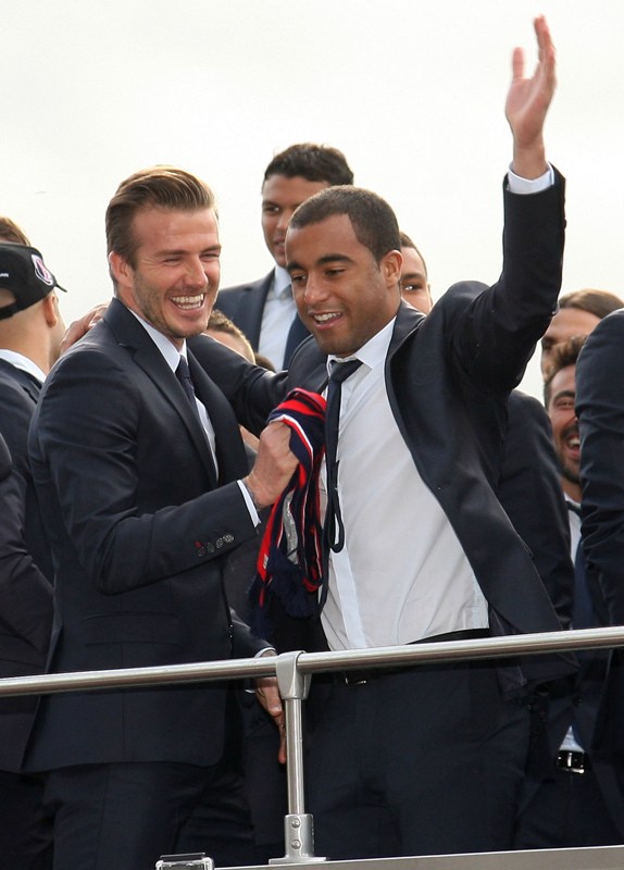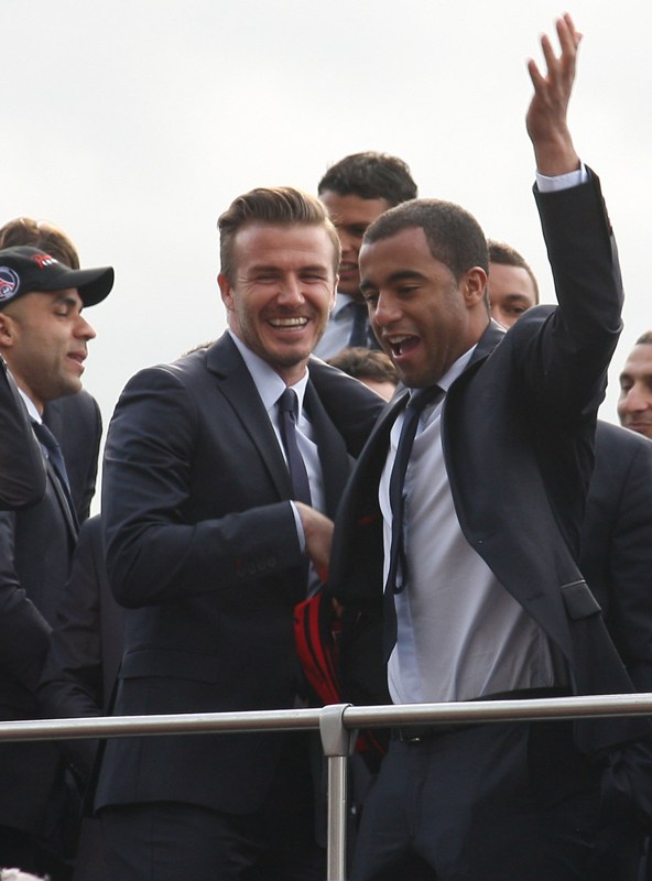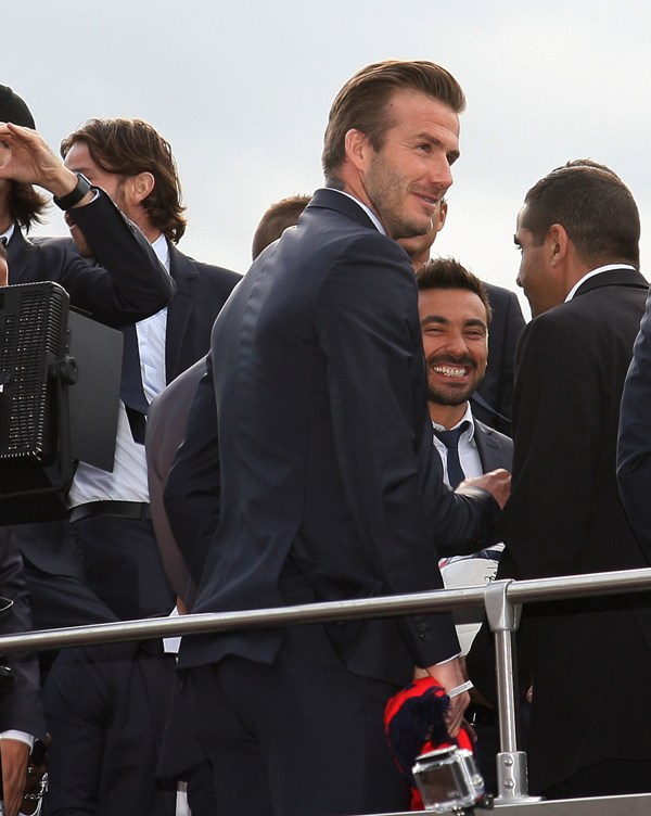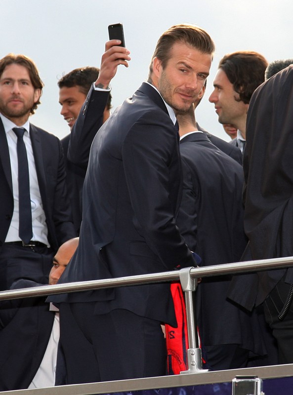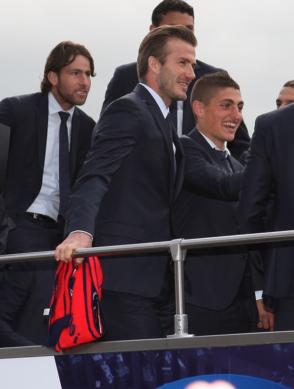 David Beckham has just announced his retirement. He’d been playing with Paris Saint-Germain, helping the team win its first French title in 19 years on Saturday. Here he is celebrating with his teammates at the victory parade on Tuesday. PSG was expected to ask him to stay for another year but he’s decided to turn it down, explaining: