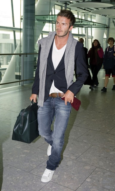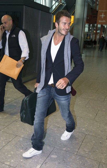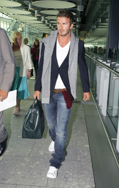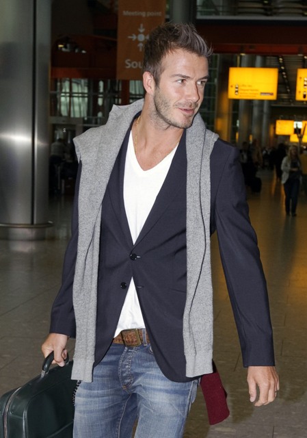 These are photos of Disgusting David arriving in London. He’s part of the delegation presenting England’s Bid Book to Fifa for the 2018 World Cup of SOCCER. (Football is big dudes committing legalized assault on one another. SOCCER is track stars that can kick. And you probably think I’m being an aggressive American right now, but that’s what cultural hegemony gets you.) At least Becks is actually smiling. Usually he’s scowling and pissy when photographed in airports. Of course, Posh isn’t with him. It must be terrifying to travel with a praying mantis. Obviously he can kick back and relax a little on the plane when he’s not worried about his mate devouring him in a fit of hunger-induced rage. I wonder what Becks’ role is in the World Cup delegation? Judging from my knowledge of him as an American Major League SOCCER player, he will sit quietly and do nothing. According to reports, Becks turned down several offers to be a commentator during the World Cup so that he could “be there” for his team and to focus on the Bid Book presentation. But William and Harry are also going to be pitching Fifa for the 2018 World Cup. Do you really need Disgusting David when you have the future king and the rebel prince wooing you?