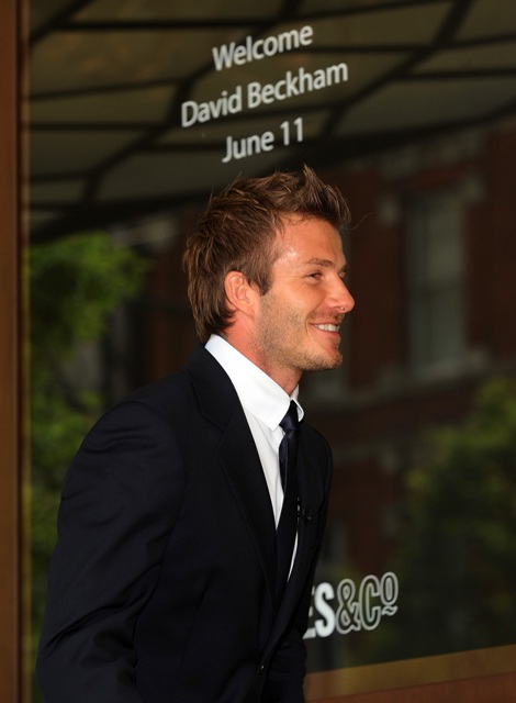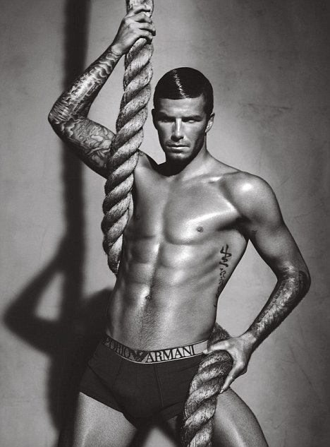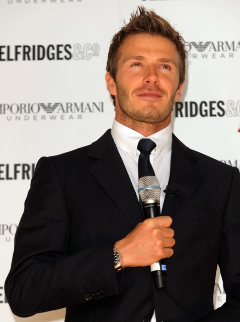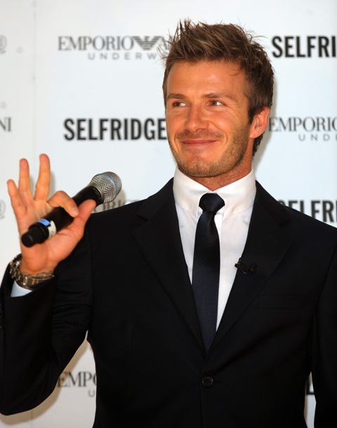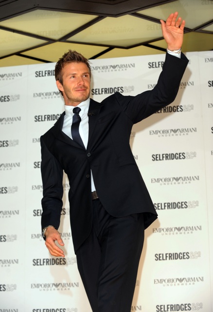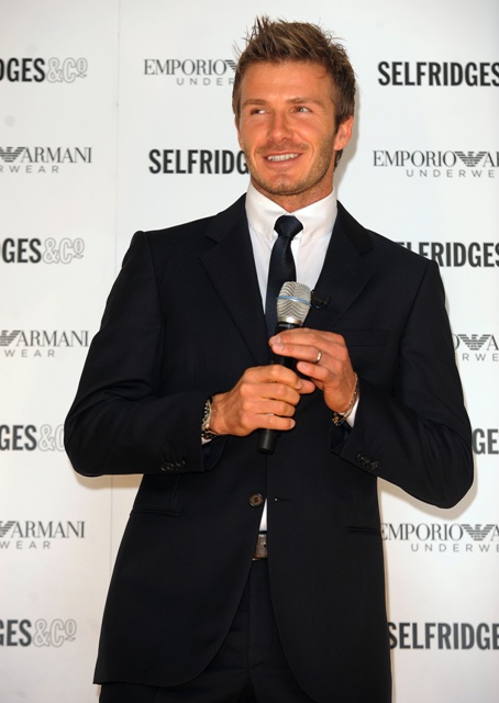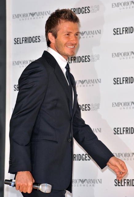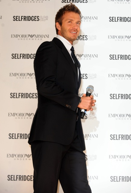 As you know, he and his wife are the spokesbodies for the Armani underwear line. David Beckham played for England and enjoyed a 6-0 win yesterday over Andorra and today showed up at Selfridges for an in-store appearance to promote the brand and unveil a new ad.