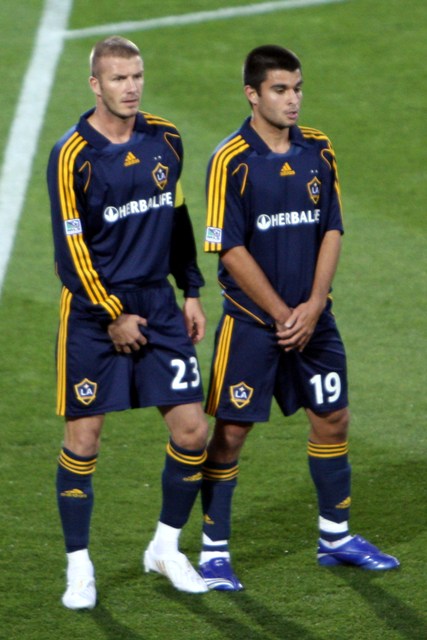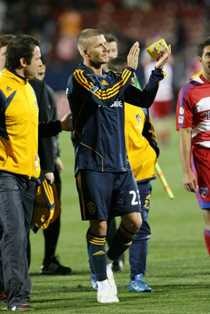 Anyway, a few more shots attached of Becks during the game. Love that his teammate is merely covering his balls while David has to go for the full on clutch. Must protect the golden jewels. This is a good thing. We are all waiting for LaLa Beckham.