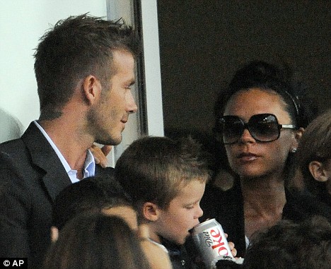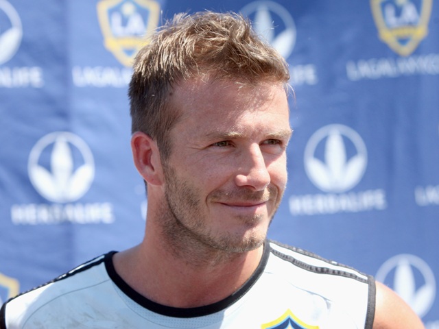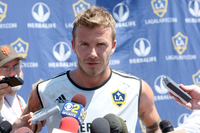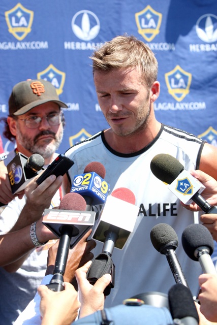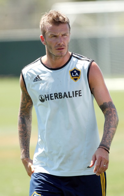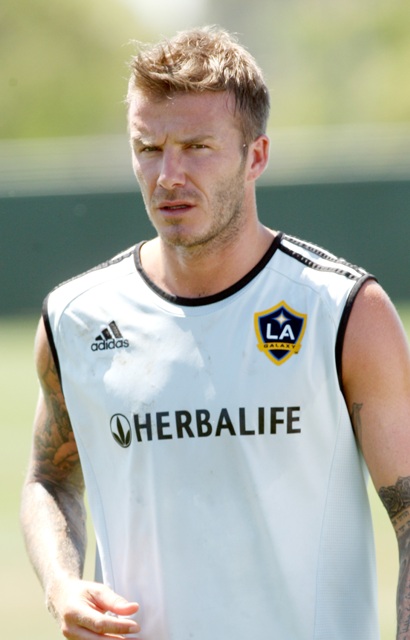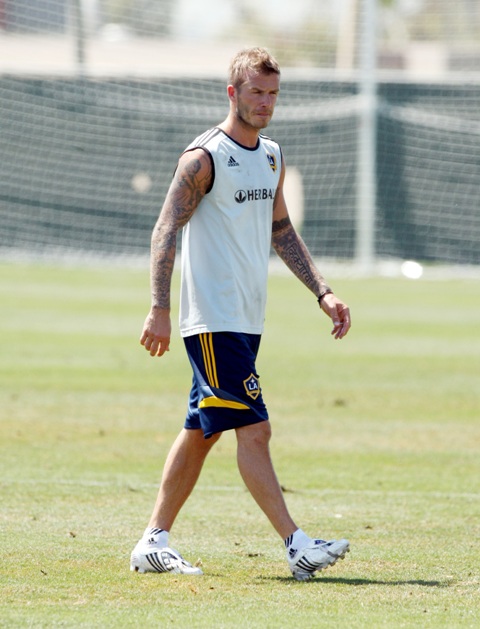 This is Becks training with the Galaxy yesterday. Yum. And in the stands during the Galaxy match with his family. They pay him to watch…?