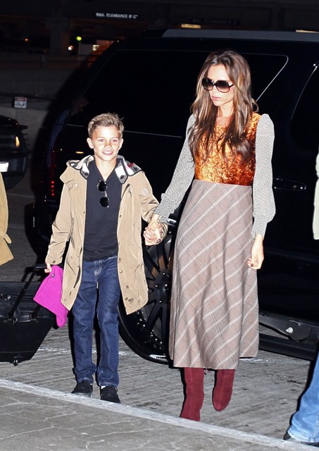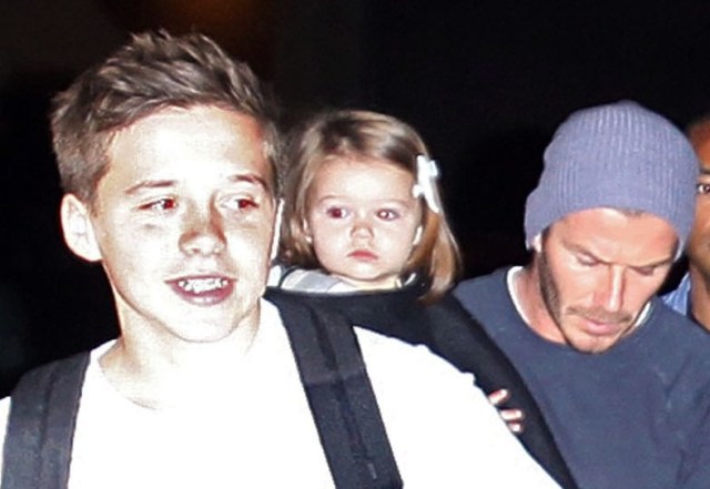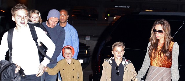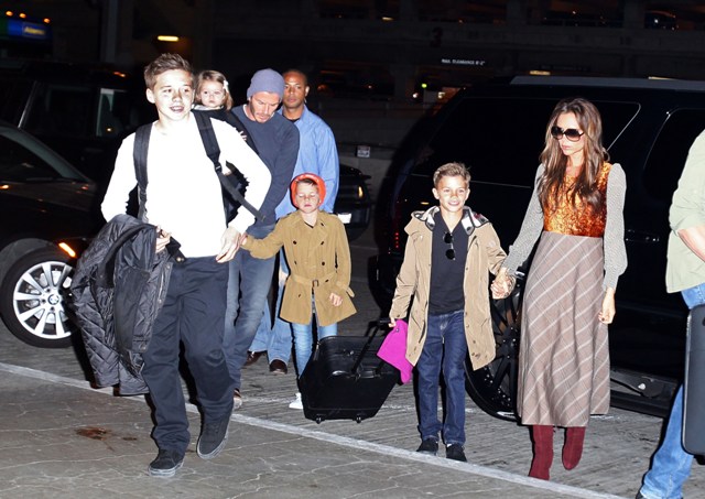 H7, her mother, and her brothers were dropped off at LAX the other night by dad David who did not travel with them to London as he’s preparing for the MLS Cup Final on December 1 once again against Houston. Needless to say, Posh and the kids will be back well in time to watch Becks play for the Galaxy one last time. As you probably know, he announced this week that after six years, he’s leaving the club. They say he wants to give football in Europe one more shot before it’s really, really, really too late, although several Australian teams are apparently moving aggressively to secure him. Can you imagine Victoria full-timing it Down Under? I mean, it would have to be sick money. Like stupid stupid money.