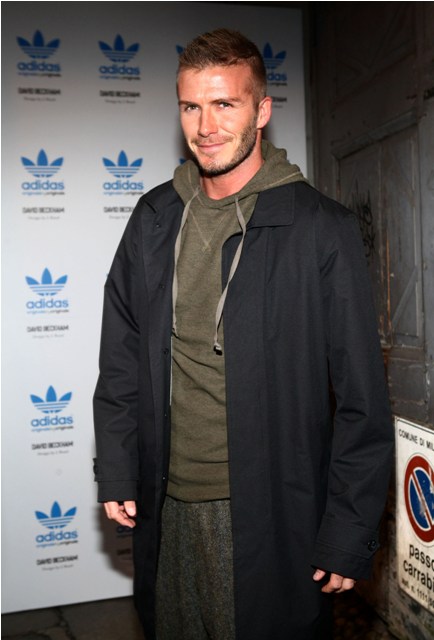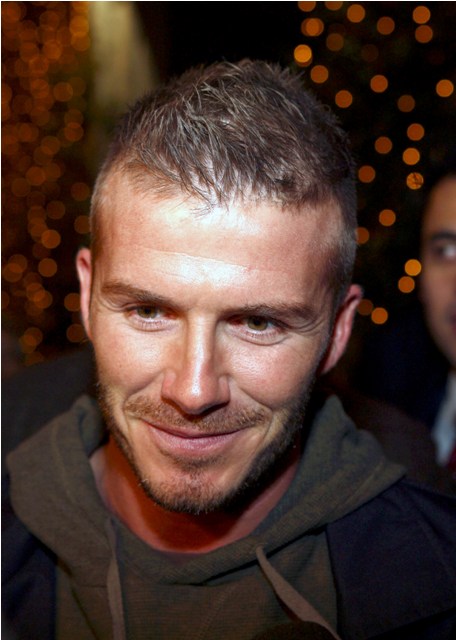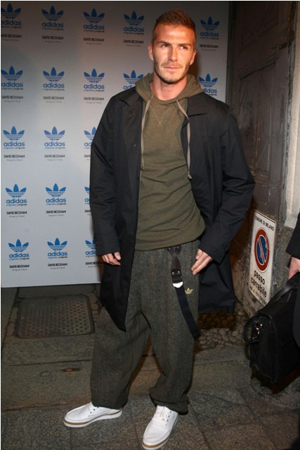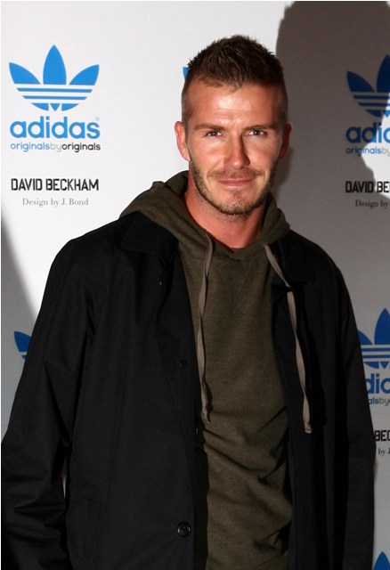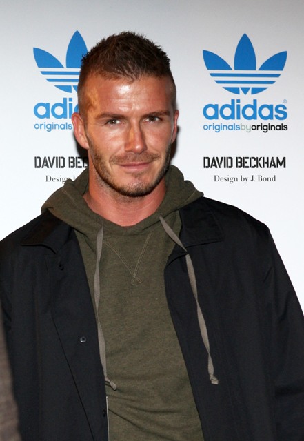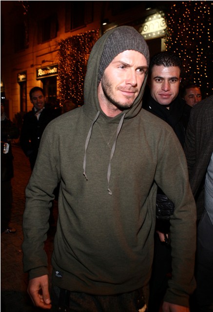 Becks was attending a fashion show. He was being interviewed outside the venue. The rogue reporter decided she wanted to see if he stuffed his panties in the Armani underwear ads. So she put on yellow rubber gloves and gave him a squeeze. Becks did not seem to enjoy it, his security took him away immediately.