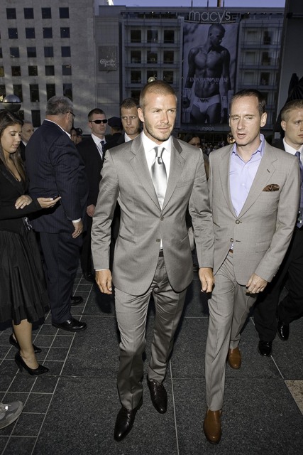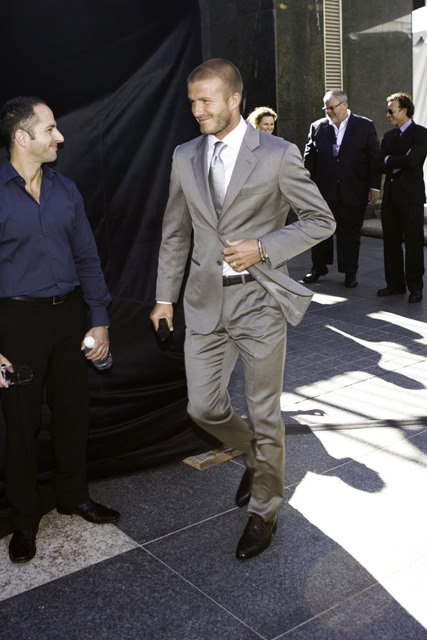 Thing is, I can’t decide which I lust better: my Becks close to naked or my Becks fully clothed. Because Becks wears his clothes so bloody well. Check out the suit. Check out how he fills out the suit. And his gait. I always prefer a moving Becks to a stationary Becks.