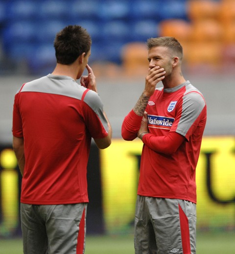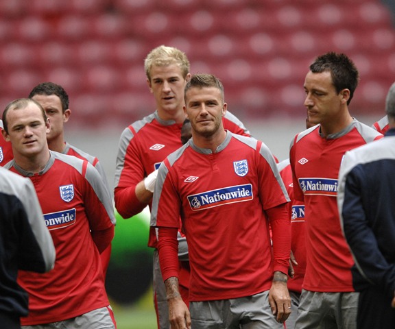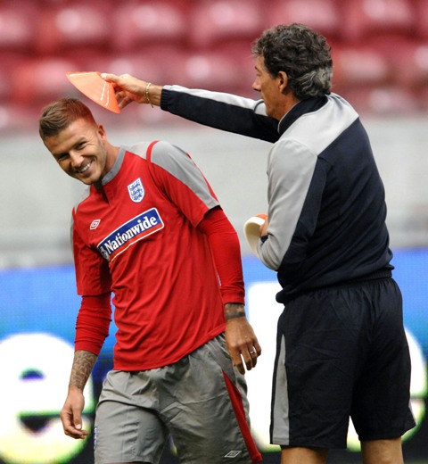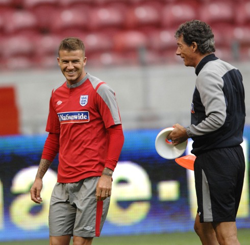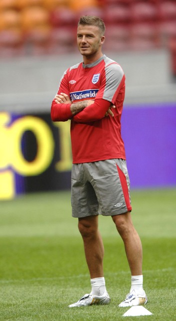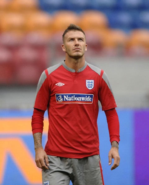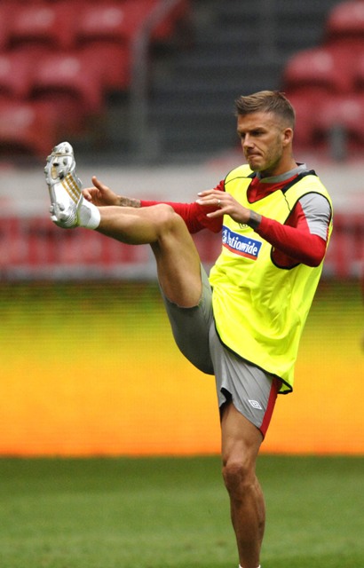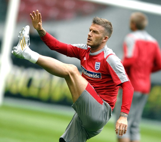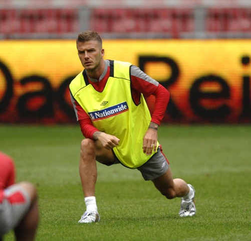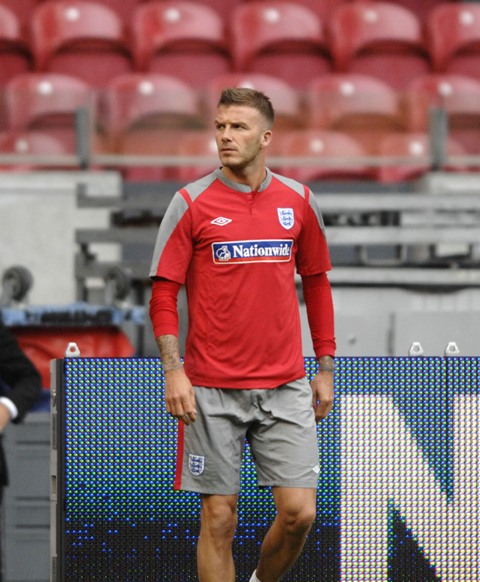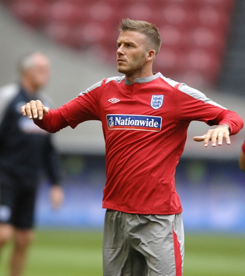 It’s Becks. With the English team prepping for their friendly against Holland. Apparently he’s doing so against the wishes of the LA Galaxy.
