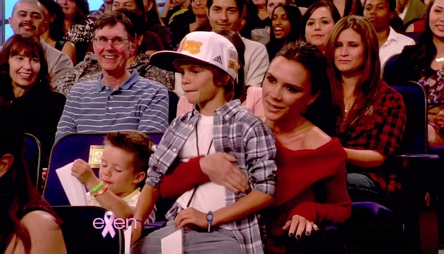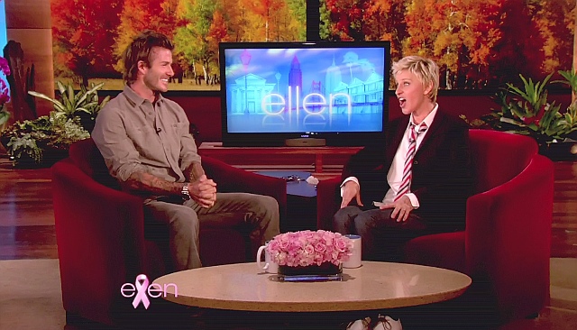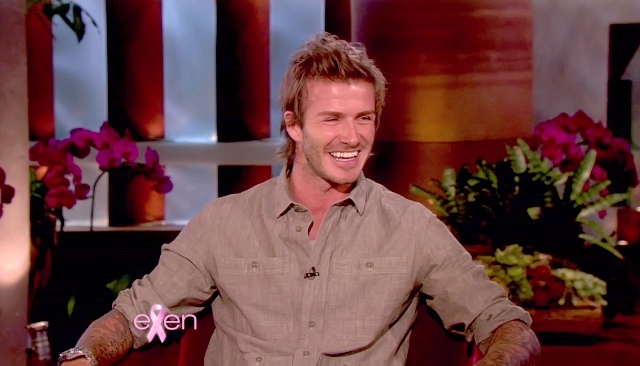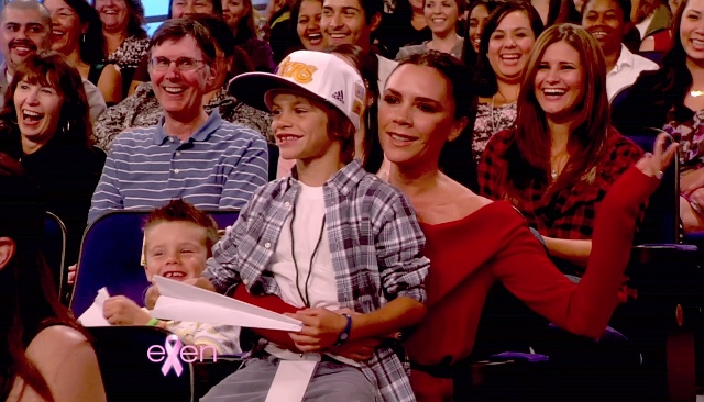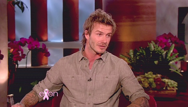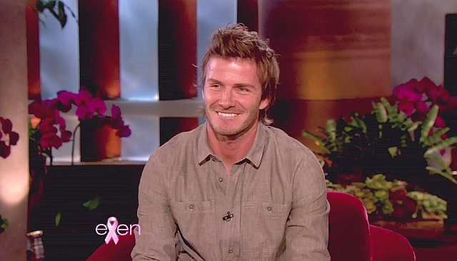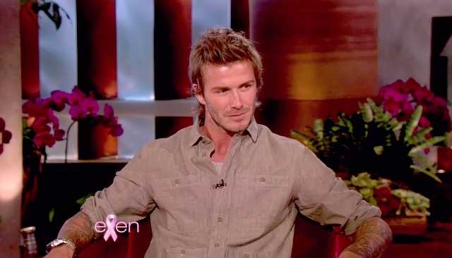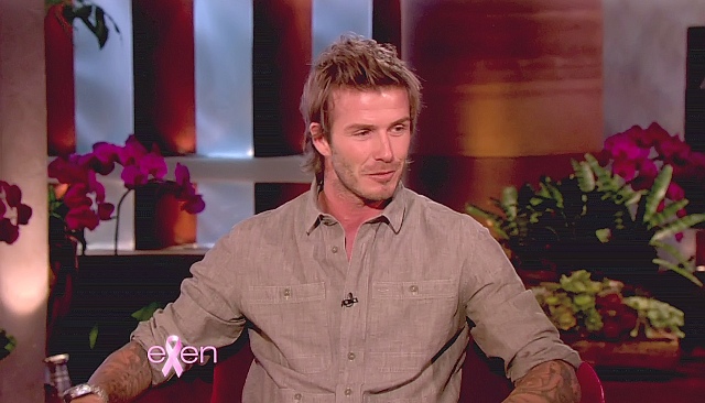 Victoria and his boys were there, two of them at least. Posh apparently was brought into the interview when Becks claimed that he is neat and she is messy and she objected to that, to which he replied jokingly: