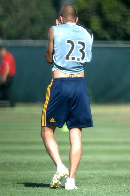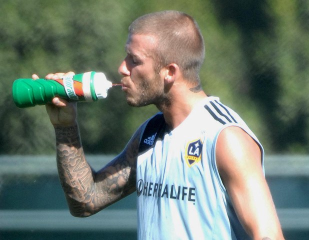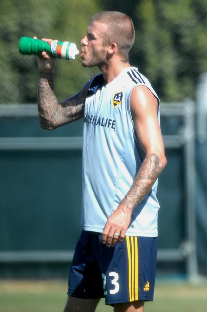 Check out Becks at practice in LA yesterday. He’s hot to me even when he’s drinking water.