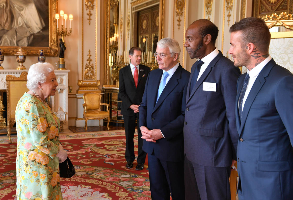 On Tuesday the real David Beckham was at Buckingham Palace at the Queen’s Young Leader Awards. There was no photo taken of Becks with the Sussexes, Harry and Meghan. He did, however, share a giggle with Her Majesty because upon greeting him she asked, “Are you not watching the television?” That was meant to imply, of course, that he would have rather have been watching the World Cup. I wonder what the Queen thinks of all his tattoos. As for Becks and his World Cup watching, where was he watching the major Germany upset yesterday? Today/tonight is the one he really doesn’t want to miss. It’s the big showdown between England and Belgium. Brazil yesterday, by the way, was playing their match in the evening in the UK. Keep that in mind for an upcoming post about the Beckhams.