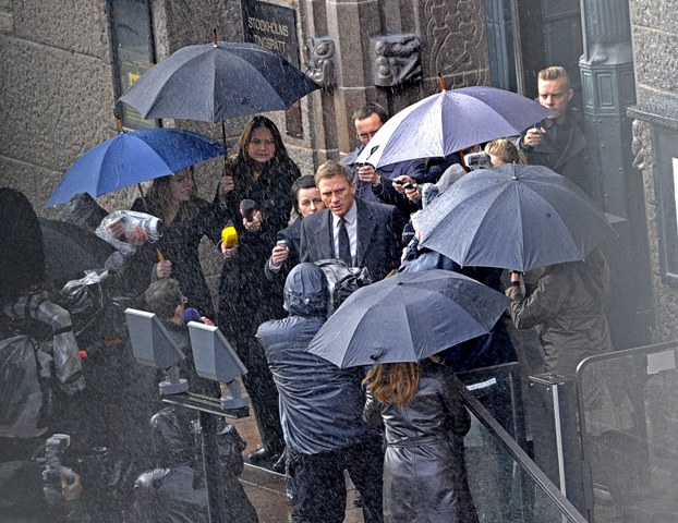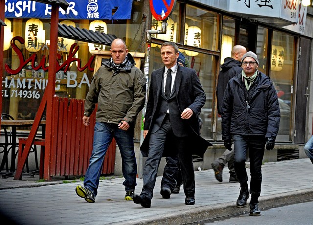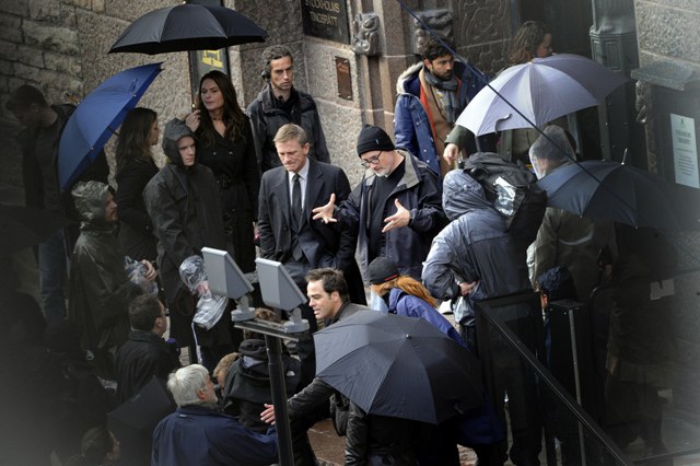 He was spotted on set with Daniel Craig this weekend giving direction as they shoot what I’m assuming to be the early scene in the book when “Kalle Blomkvist” leaves the courthouse after he is sentenced. Jesus he looks great in a suit.