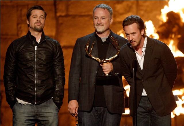Attached – Fincher promoting The Social Network, with Cate Blanchett at herWalk of Fame ceremony, with Edward Norton and Brad Pitt when Fight Clubwas honoured, and in Cannes for Zodiac.