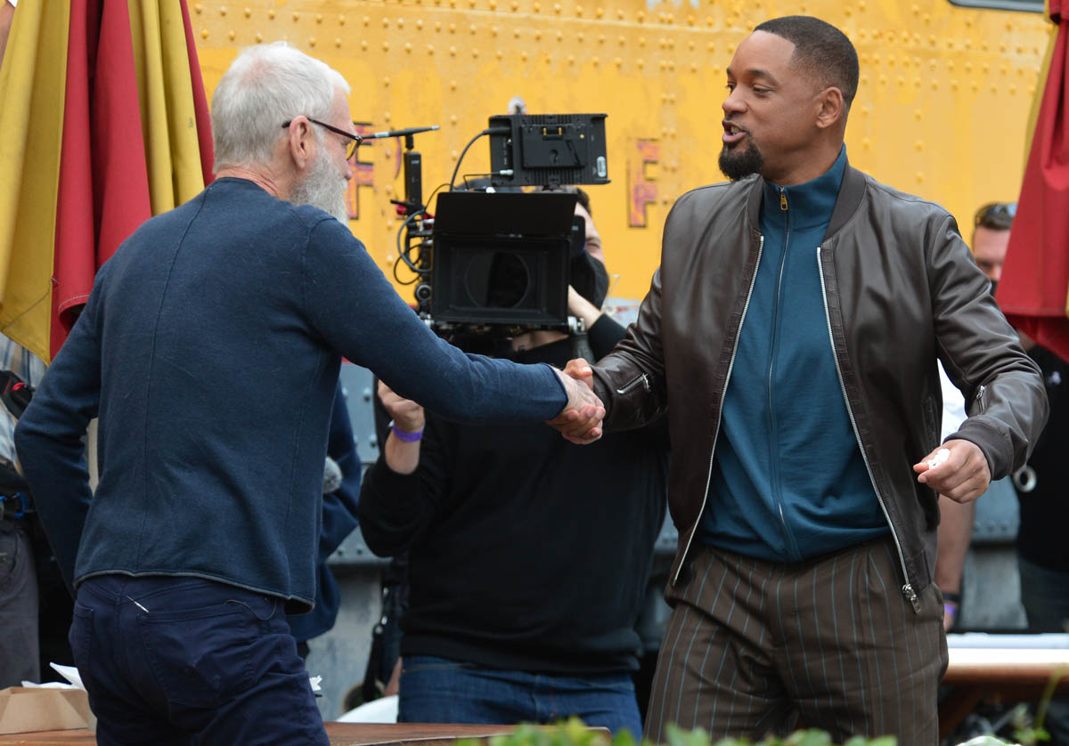 Here is Will Smith, fresh off his SAG award nomination, taping a segment with David Letterman for Letterman’s Netflix interview show, My Next Guest Needs No Introduction. They both look to be in high spirits, which isn’t unusual for Will Smith—that guy is always on—but Letterman can be grumpy, it is known. I guess it’s hard to be a grump around Will Smith.
