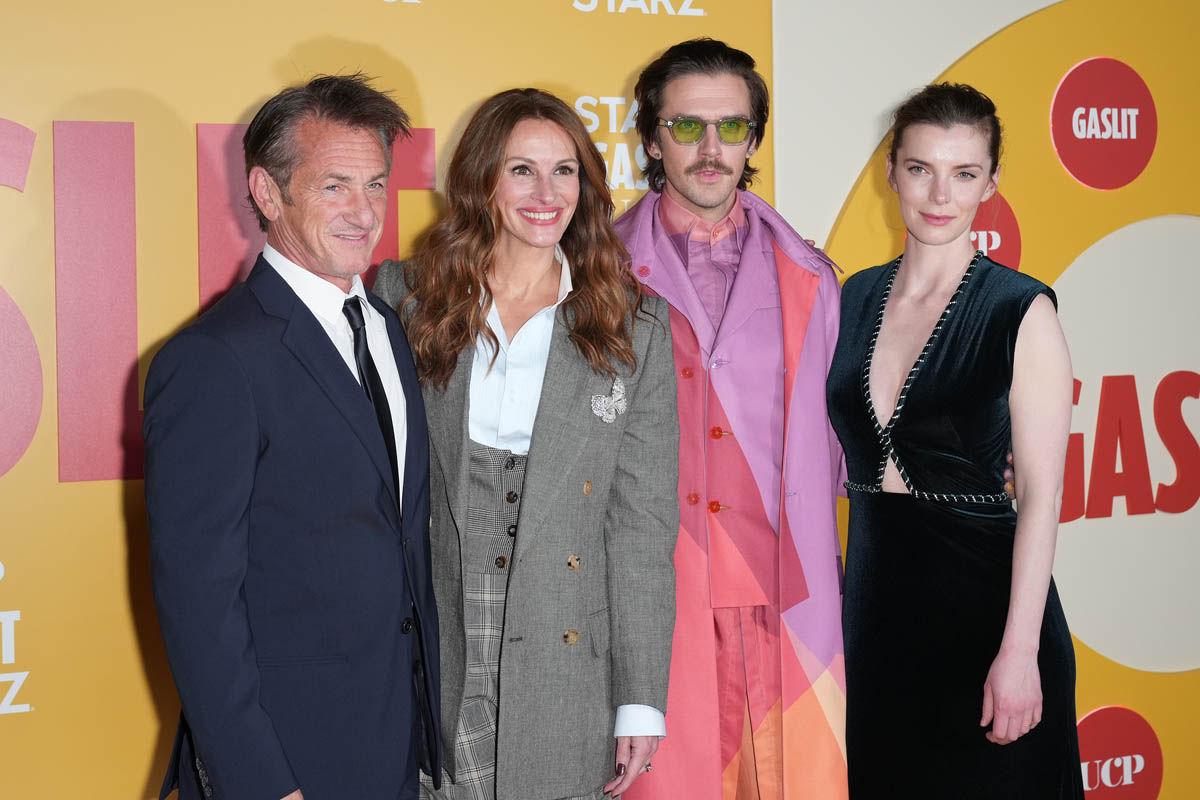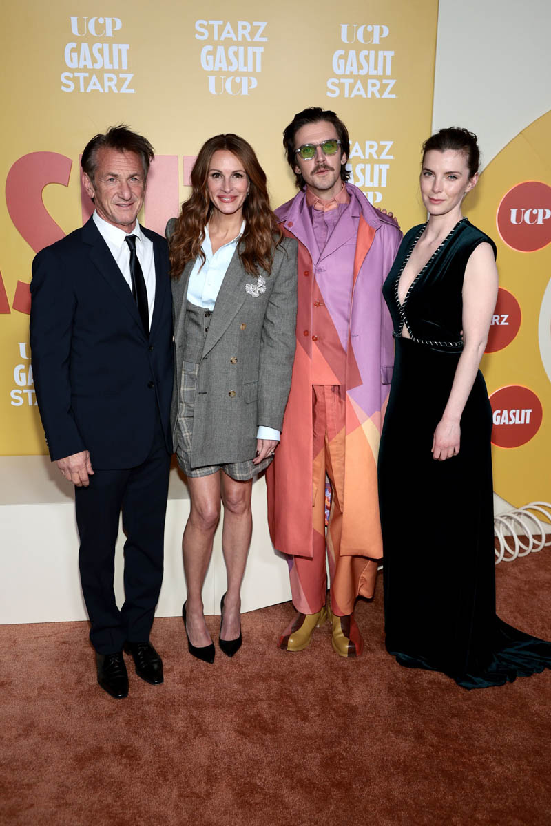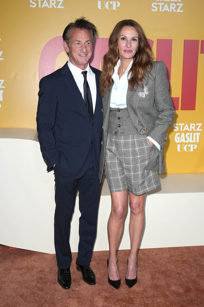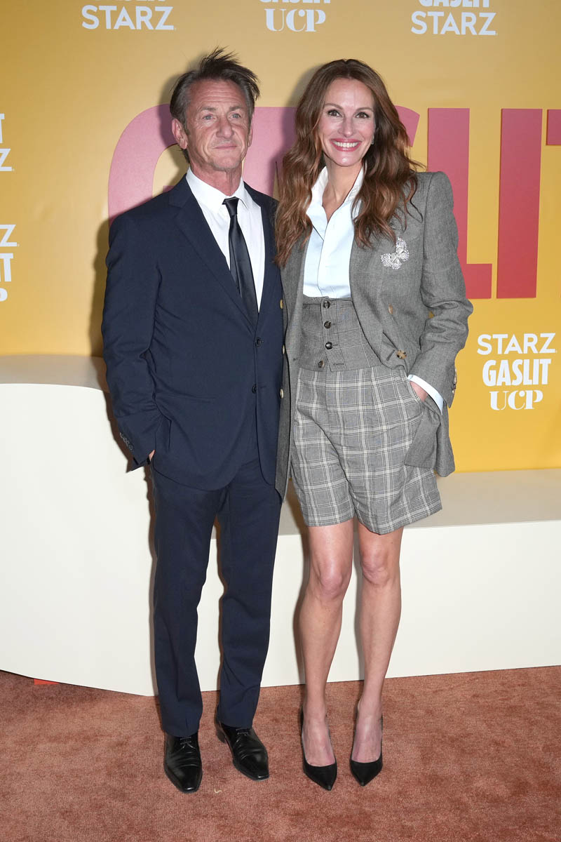 Julia is currently promoting Gaslit, the premiere was last night, we’ll get to that in a minute. So this is Julia Roberts, one of the most enduring movie stars of our time, who obviously has some experience with being interviewed but that doesn’t mean she’s an easy interview. I’ve been on two Julia Roberts junkets and I remember how nervous we all were for both of them. Before my first time I was warned by another entertainment reporter with more experience who’d interviewed her a few times by that point that you will feel it if Julia doesn’t like you. I mean she’s not Tommy Lee Jones (the scariest celebrity to interview) but she can allegedly drop the temperature in a room, like instantly. That didn’t happen to me, fortunately, but I have peers who have had the displeasure and I also have peers who’ve had totally the opposite – the pleasure and the delight of basking in the approval of Julia Roberts, when she’s willing to do the dance and comes to play.