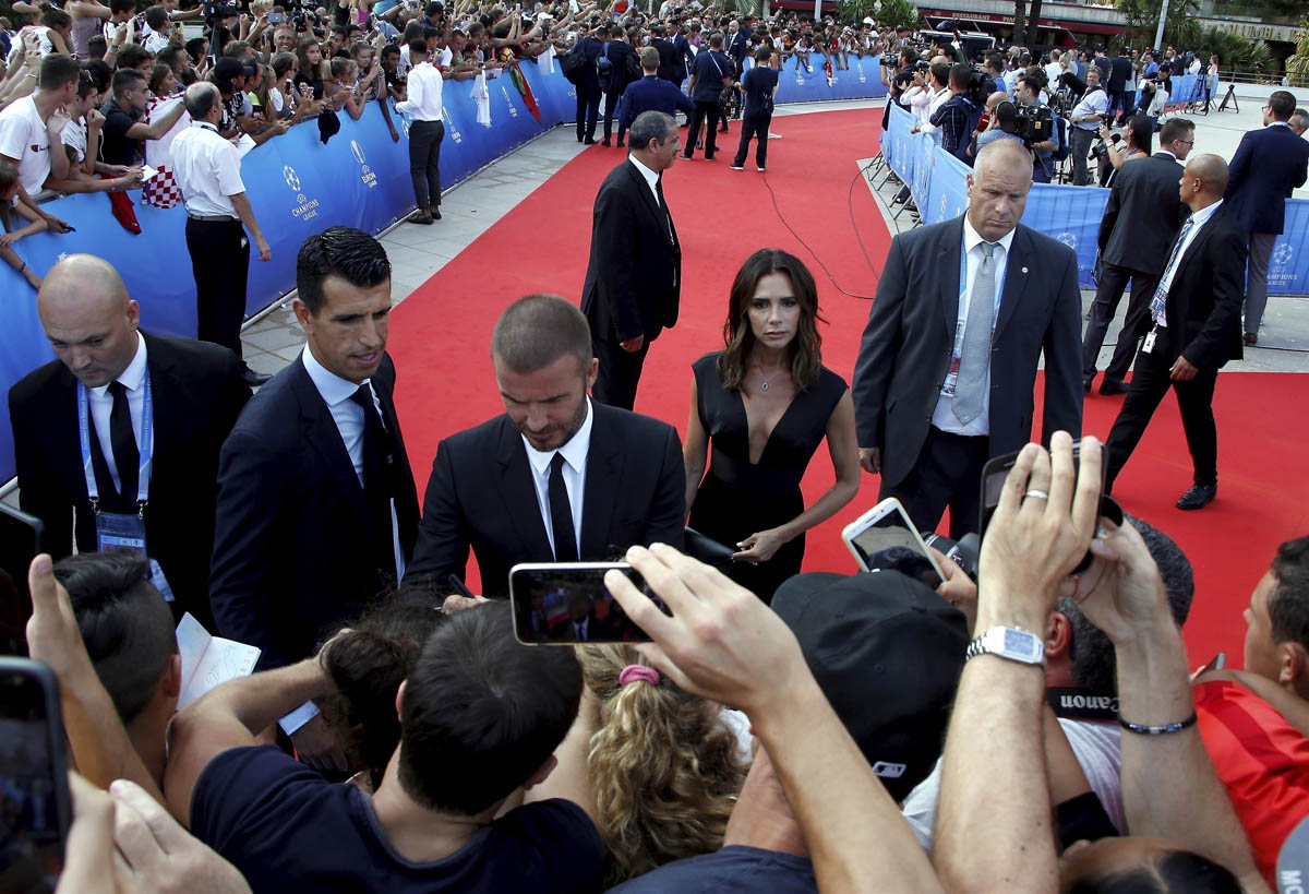 For now though, it’s OK, Beckham worriers. They have been together and were together last night in Monaco for the UEFA Champions League draw where he was presented with the UEFA President’s Award. So now you can relax for the long weekend. And more.