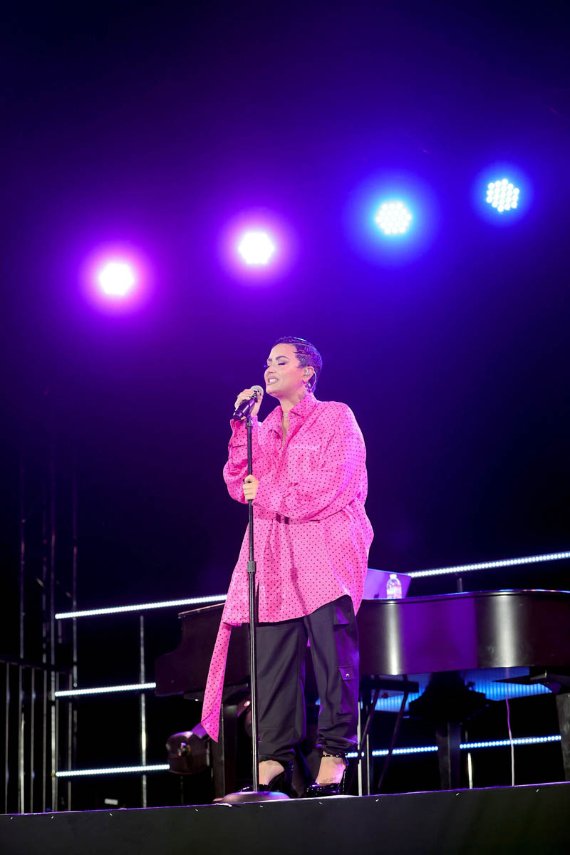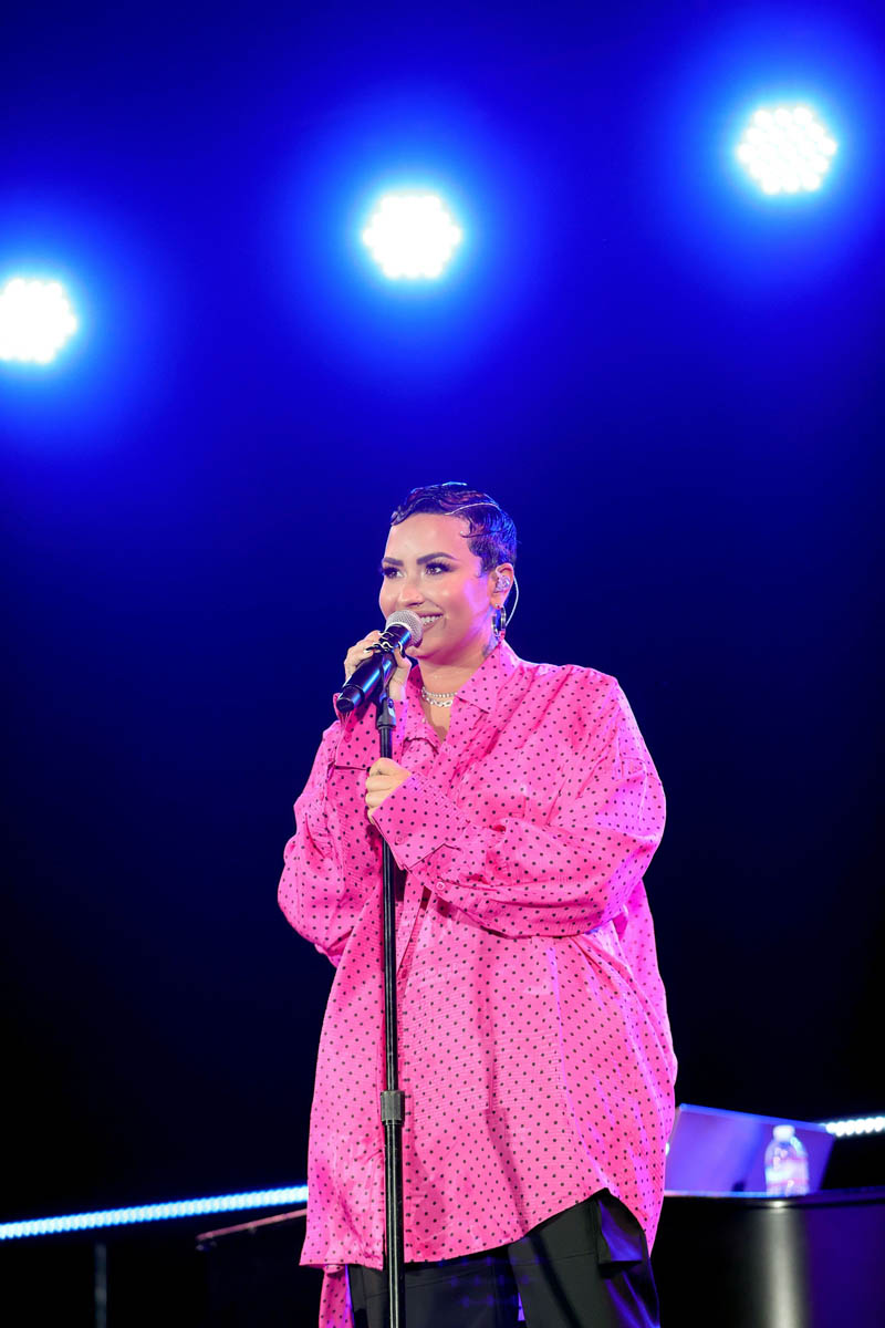 Demi Lovato performed her title track “Dancing with the Devil” live for the first time last night at the drive-in premiere for her docuseries of the same name in LA. The song chronicles her relapse, near-fatal drug overdose, and subsequent recovery, with lines like “I told you I was OK, but I was lying,” and, “Tin-foil remedy, almost got the best of me, I keep praying I don’t reach the end of my lifetime." It is startling and revealing, and one of the many ways Demi is going all-in to reclaim her narrative in the aftermath of the events of July 24, 2018 when, as she told CBS Sunday Morning, she essentially “had to die to wake up.”