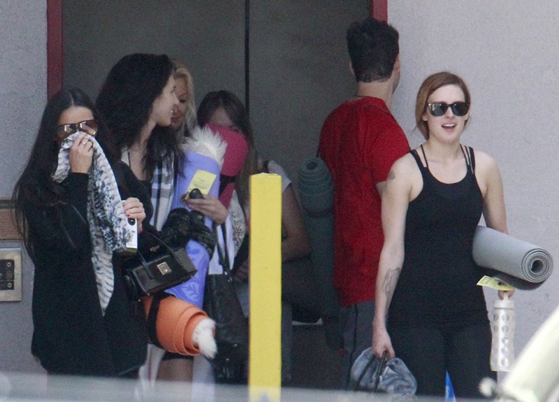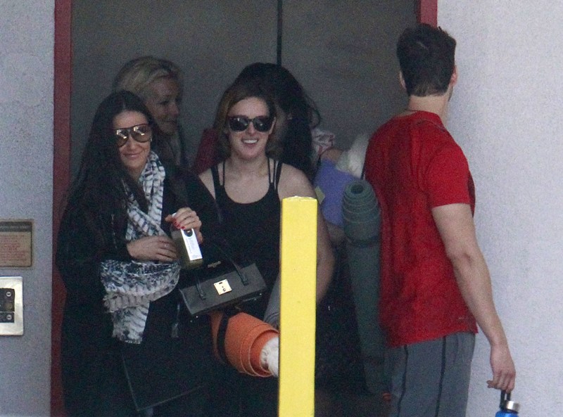 Here's another sign: Demi leaving a yoga class yesterday, smiling, with daughter Rumer. They've not been seen together publicly in a while amid reports that Demi was estranged from her daughters for her erratic behaviour. Whatever trouble was there between them is clearly being addressed. And there's nothing to snark at here. If she's focusing on repairing her relationships and not on hot young studs in Miami Beach, there's totally nothing to snark at.