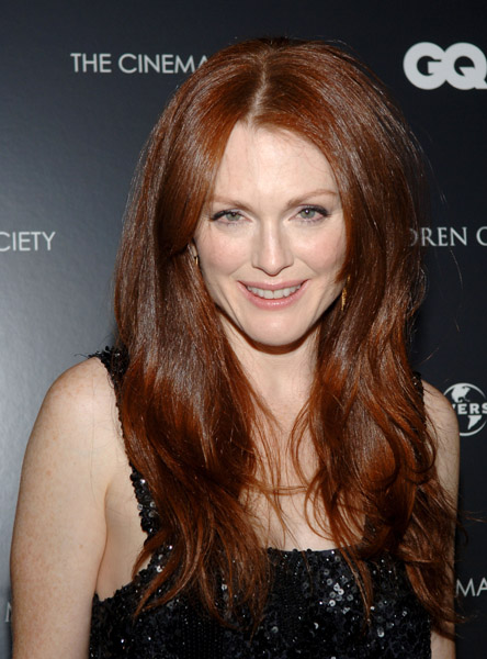 Julianne Moore was on The View the other day. Jeans tucked into high boots, a purple sweater, fresh blow out, fresh skin – she looked frickin’ gorgeous, way better than she did last night. Not that she looks bad or anything - not possible when it comes to Julianne - but still… the hair was kinda wonky and for some reason, she decided to dress for 55. Having said that, we are talking about Julianne Moore. And Julianne Moore is much more than what she wears. So who gives a sh-t if her ensemble was rather unremarkable? Let’s hope instead for a very remarkable performance in Children of Men followed by another remarkable performance in the Dylan biopic I’m Not There and one day, finally, her very own Oscar. Again – can you believe Swank has TWO and Julianne has NONE? Criminal, non? Source