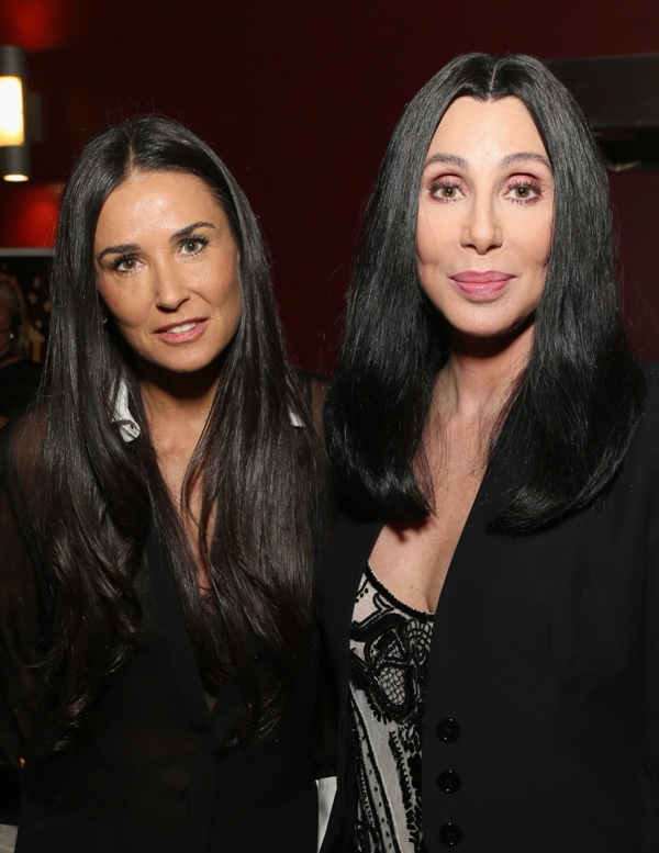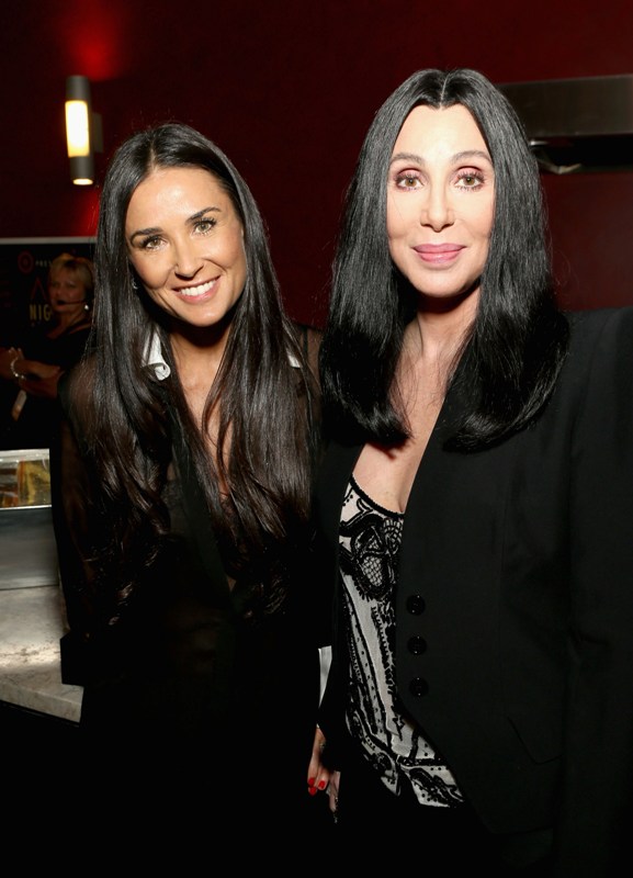 Here's Demi not hanging off a boy in Miami Beach, imitating Lindsay Lohan. Here's Demi not obsessively texting her daughters' friends, demanding to know "where's the party?!??!" to bury the insecurity felt when her husband betrayed her with a series of younger women. Here's Demi surrounded by those on her level, proper to her status. It's where she belongs, in this company.