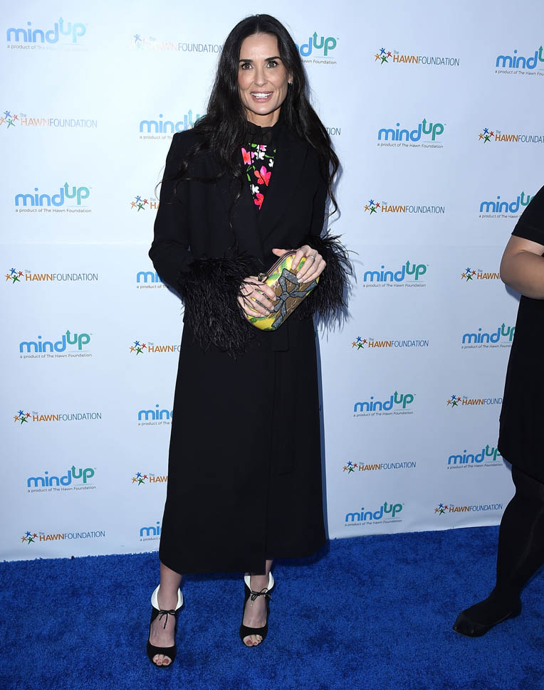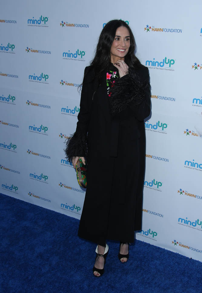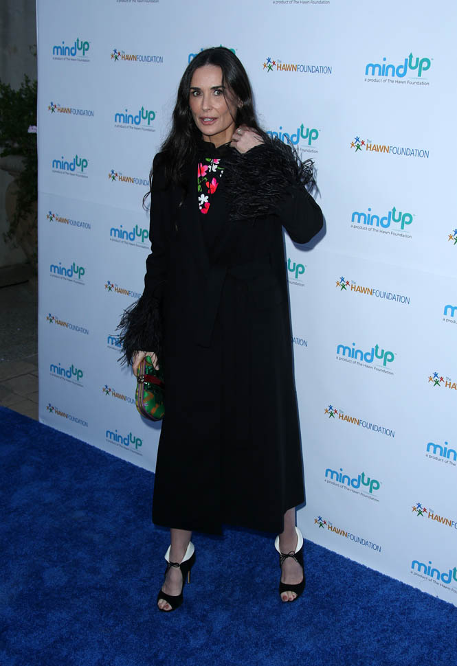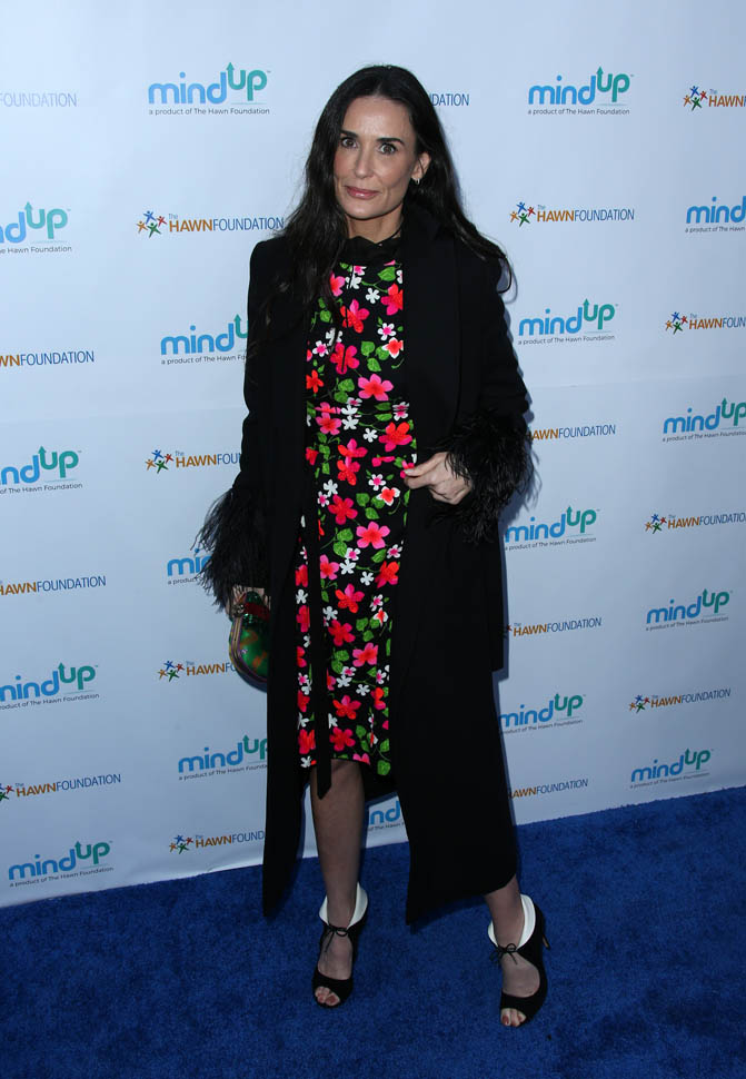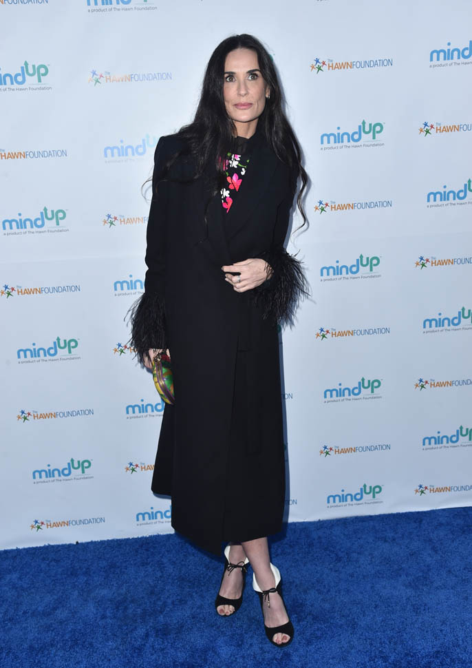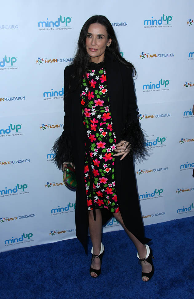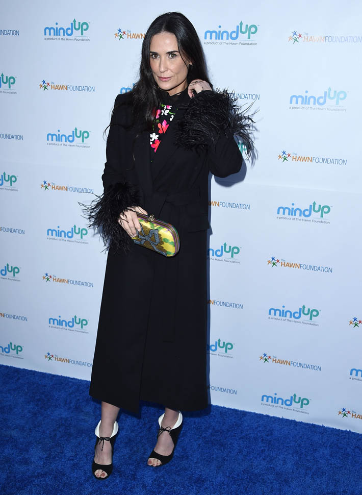 It’s not the season for it but I love this long coat on Demi Moore. The cut is gorgeous, almost like a long, well-tailored blazer, and it’s worn perfectly, over a shorter dress, to highlight how it falls. Also I am very interested in these shoes with the foldover ankles.