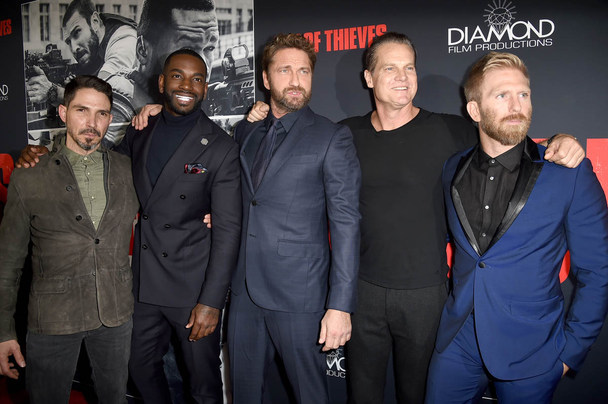 It starts off strong, though. Gerard Butler stars as “Big” Nick Flanagan, a Los Angeles County Sheriff’s deputy who bends the rules so far everyone he arrests must get off on a technicality for coerced confessions or police brutality or similar. He has a long-simmering grudge with bank robber Merrimen (Pablo Schreiber, American Gods), who, in a totally random character detail, was a football star at Nick’s rival high school. That’s right, they were both football stars at rival high schools, and now they’re locked in a cops-and-robbers duel. The homoeroticism in Thieves isn’t latent so much as dripping from every frame.