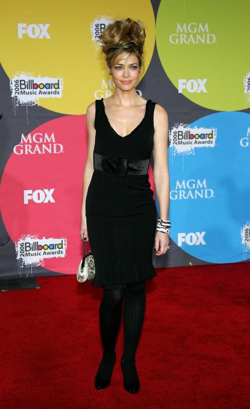 Oh this has to rank, doesn’t it? Top to bottom, head to toe... Denise Richards has achieved a level of atrocity that merits immediate induction into the Worst Ever Hall of Fame – good for me since I hate that f&cking bitch, very very bad for her since there is no way in hell this was what she intended. Maybe attacking little old ladies by throwing laptops off balconies fried her brain? Or was it cherry picking off her ex best friend’s broken marriage? Or selling out another friend’s pregnancy/miscarriage/failed relationship to the tabloids? I’m telling you – Denise Richards is in for a world of karmic hurt, even better that she’ll look like sh-t in the process. Don’t ask me about the animal that has taken up residence on top of her head - I have no idea what it is. I’m actually more offended by her school-marm little bow dress and those tights (forgive me but I think they give her chunky legs and Denise has a CRAZY body), like a five year old going to church, quite ironic actually since this is the same slut who is rumoured to have worked for Heidi Fleiss. Or perhaps this is the kind of kink that gets Richie going. Perhaps this is how a professional scores her next husband, secures her next millions. After all, Denise would know, right? Maybe the babydoll works on Sambora – aging rocker eager to warm his bed and, cunning little minx that she is, Denise Richards ready to hop right in. She never was much of an actress…I suppose it’s best she sticks to the one thing that she can actually do well.