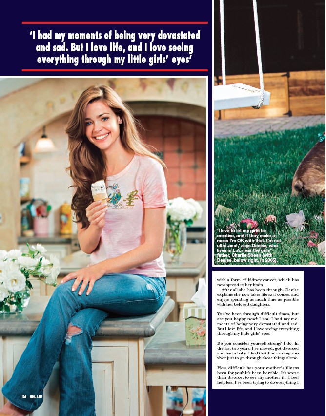 As I’ve previously reported, Page Six is referring to published suggestions that Denise routinely “arranges” photo opps with the pappies, conveniently when she’s mothering her children. Denise, as you would expect, is denying this, insisting to Glamour that "paparazzi were climbing over the fence to try to get shots of me inside my house (when I split from Charlie Sheen). I had to hire a security guard to live with me and I kept the shades down at all times. It was awful.”