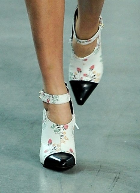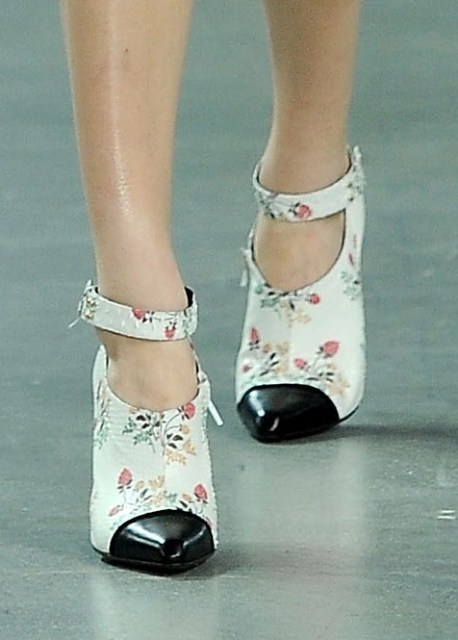 Ummm...those floral mary janes with the patent tip? Goddamn, I might have to jump on a pole for those. See that white print dress with the red collar? This is what Victoria Beckham wants to be, you know?
