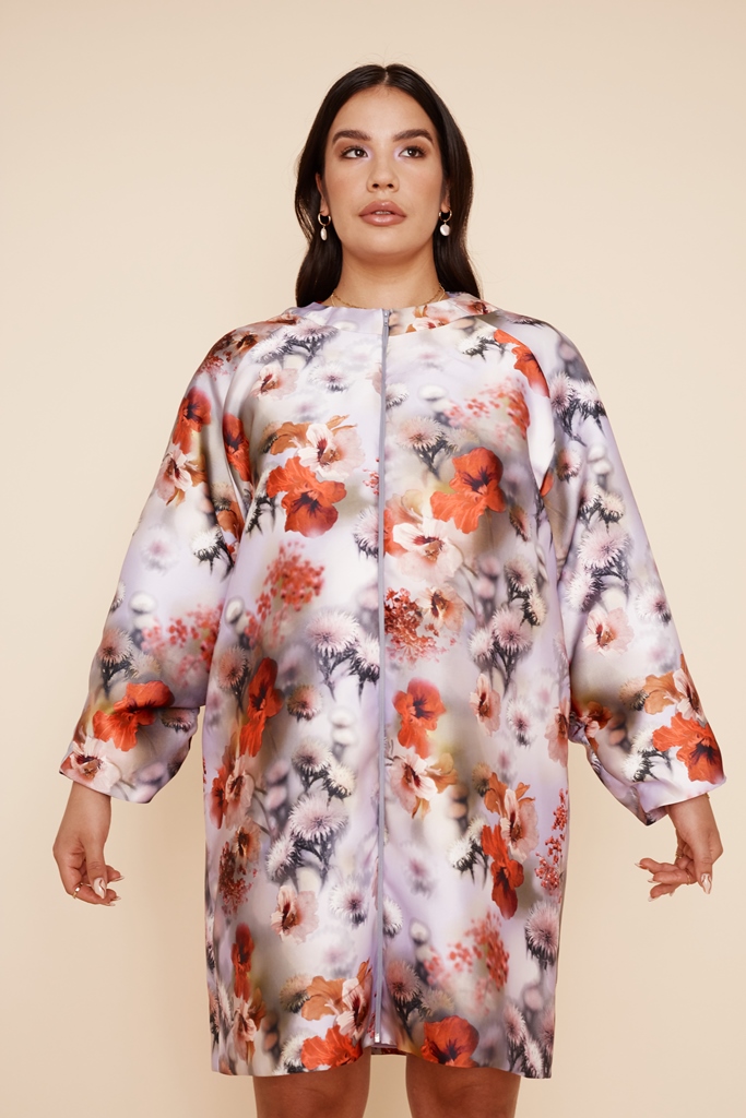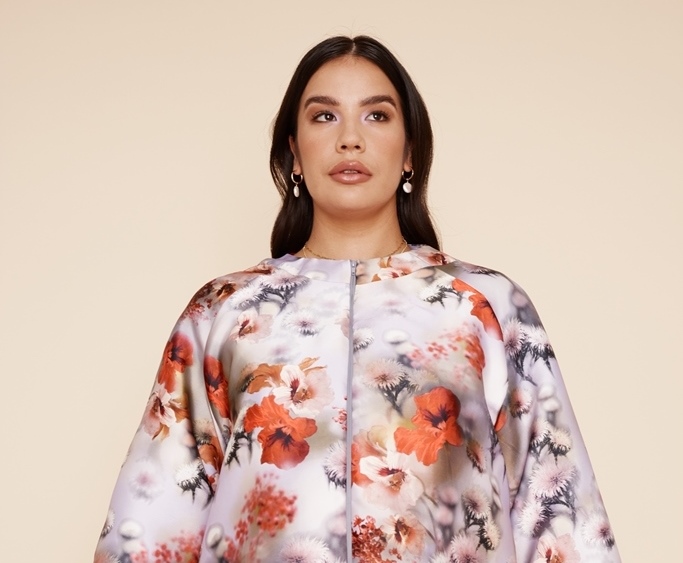 Designer Lesley Hampton is the 2021 Youth Recipient for the Inspire Awards which will be presented tomorrow on CBC and APTN at 8pm and streaming at the same time for free on the CBC Gem app. Lesley is being recognised for being “a role model to Indigenous youth”, proudly advocating for body positivity, mental health, and authentic representation. She is one of the most talented creatives in Canada today, her work has been getting international attention, and she has new work to showcase now, with the launch of the new Aurora Collection. The pieces are wearable, inclusive, and SO beautiful. Look at this floral jacket dress!
