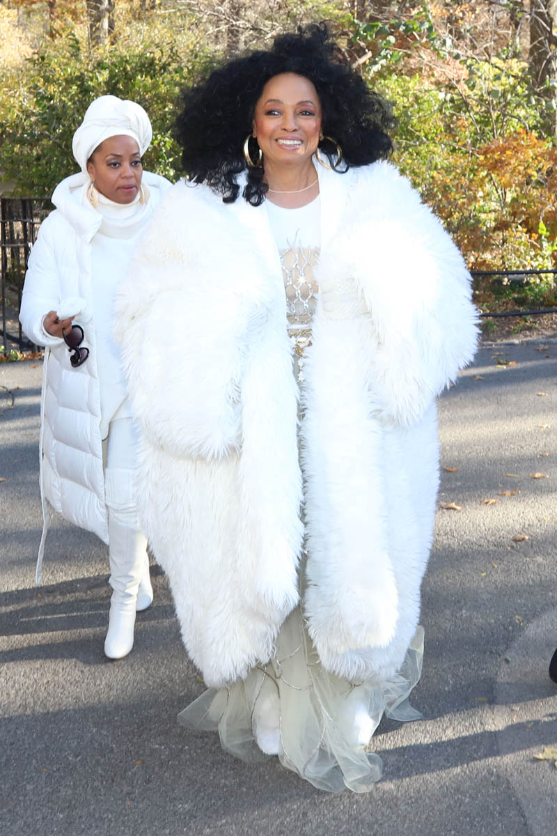 Outfits? Or just the singular OUTFIT. Without the “s”? Diana Ross was joined by several of her family members at the Macy’s Thanksgiving Day parade yesterday, including Tracee Ellis Ross, Evan Ross, and Ashlee Simpson. So they’re all in different outfits. But they’re also all in all-white outfits, making a collective one outfit team statement.