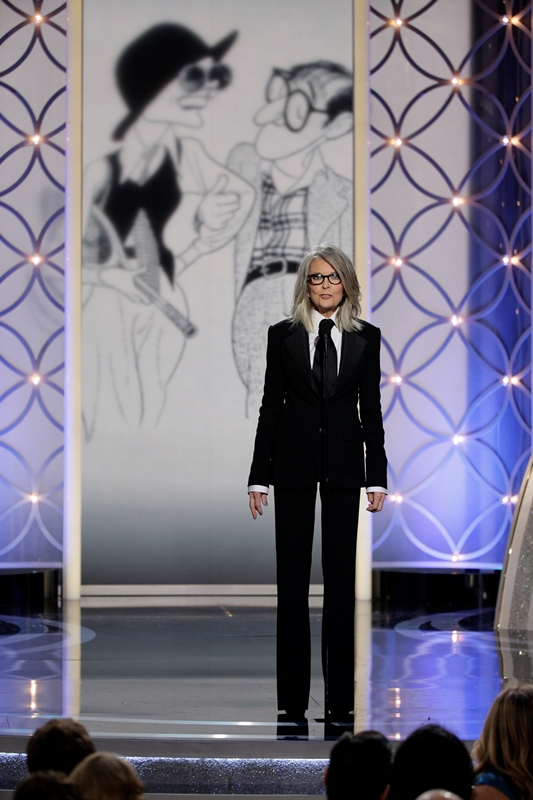 Lord, I love it. And I am not a Keaton person, per se. I mean, I like her and I think she’s interesting but I’m not a devotee like some. I don’t have a thing for turtlenecks and gloves and hats. But I’m not made of stone. I had my head turned by that suit like every other woman watching the show, thought about it, and then decided what I really wanted was that long, silver hair.