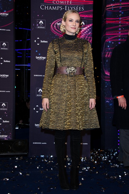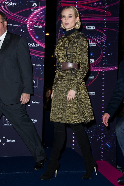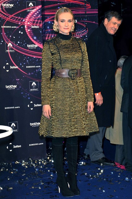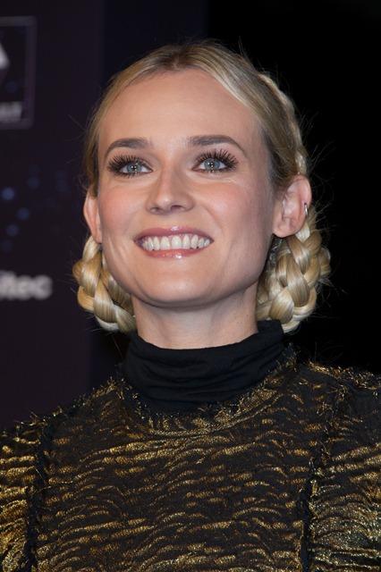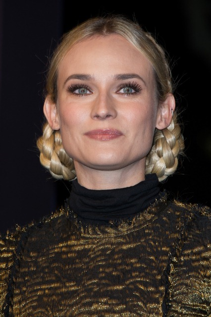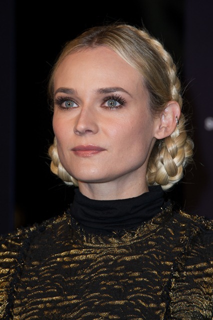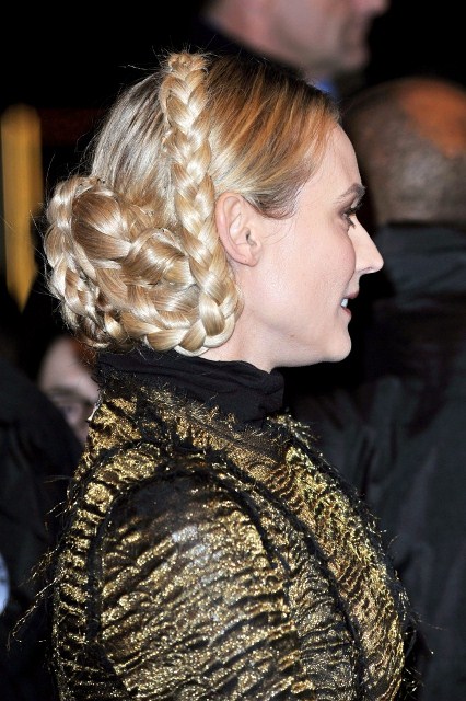 Diane Kruger’s wearing her braids with Lanvin and a big leather belt, like a warrior queen with a tiger talisman, a high fashion modern interpretation of Joan of Arc.