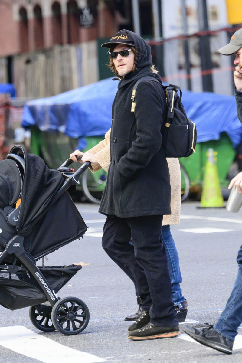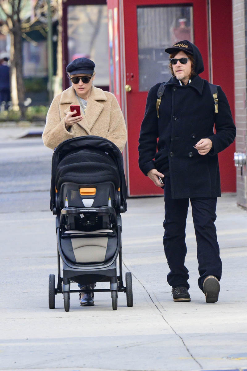 The Daily Mail has photos of Kruger and Reedus out for a walk with their stroller. I assume the baby is inside, but I don’t know. Maybe some people just like pushing strollers and looking like they have a kid, I don’t know your life. Anyway, what do we think this baby’s name is? Duana and I were just emailing about the trials of young Abcde, and some of the names I hear in my kid-laden neighborhood—I hear a lot of yupster names. I doubt this baby has a yupster name, though. Reedus has a son named Mingus, so that’s at least half of what we’re dealing with. Like what’s the formula for this name? German + motorcycle hippie/first kid x second kid? We need a full Duana breakdown of the Kruger-Reedus baby naming formula because this is not going to be another Jack or Lily.