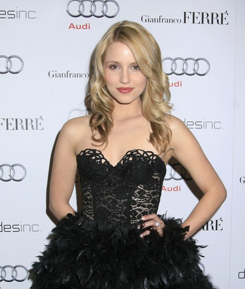 This is Dianna, who is BEAUTIFUL, last night at an Audi party in honour of Golden Globe nominee Anna Paquin. Most people showed up in low key cocktail. Anna herself wore a subdued black dress, readying the drama for Sunday night. Diana however arrived at the party in a bustier and feathers. It’s an adorable dress, sure, but maybe not the right occasion? Also, her hair looks like it needs two bows on either side like a 5 year old at a birthday party. It’s a little overkill. Am now worried about what she’ll be wearing at the Globes. Glee is nominated for Best TV Comedy/Musical up against 30 Rock, Entourage, Modern Family, and The Office along with nods for Lea Michele, Jane Lynch, and Matthew Morrison.