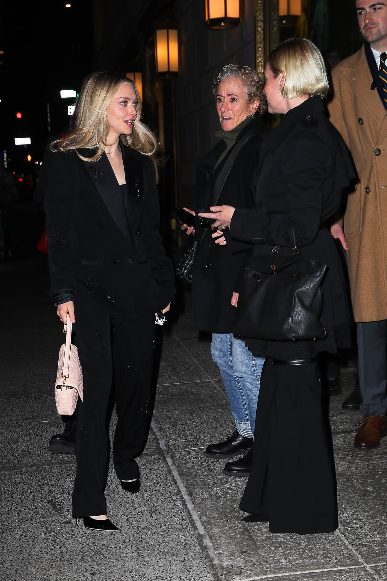 Amanda Seyfried is currently promoting Atom Egoyan’s Seven Veils. Here she is in New York after dinner with some friends. Earlier in the day she was on The Tonight Show with Jimmy Fallon. And what’s making headlines from her appearance is the fact that she brought her dulcimer with her and performed Joni Mitchell’s “California”.