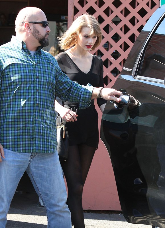 Attached – Taylor leaving a dance class yesterday. With her new haircut do you think she looks like Karlie Kloss?