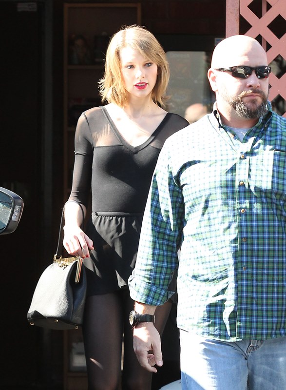 Attached – Taylor leaving a dance class yesterday. With her new haircut do you think she looks like Karlie Kloss?