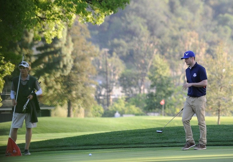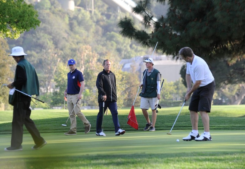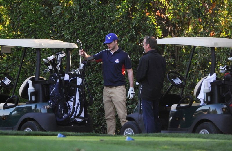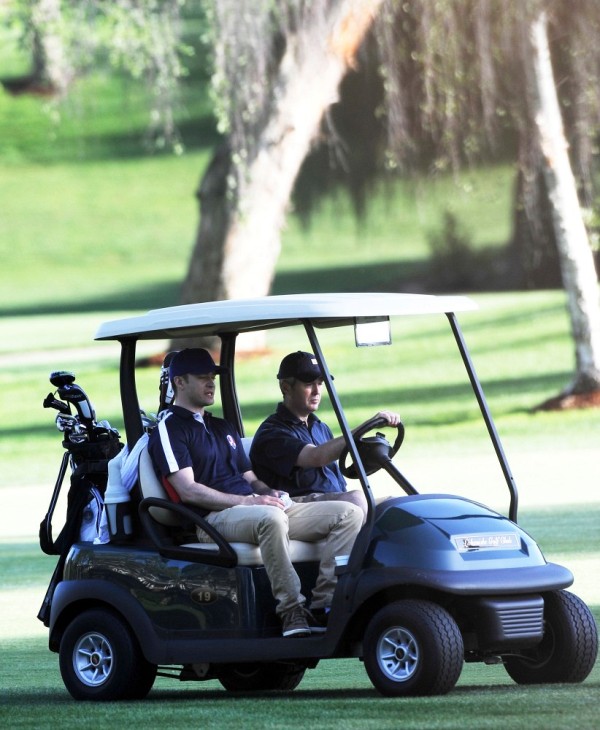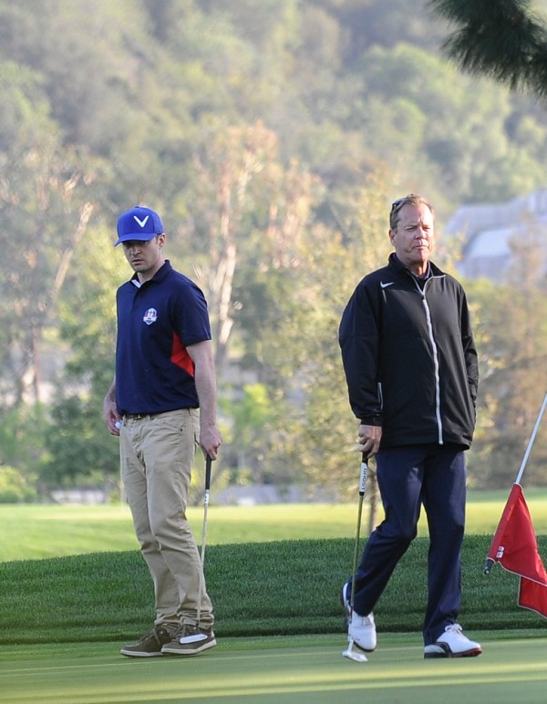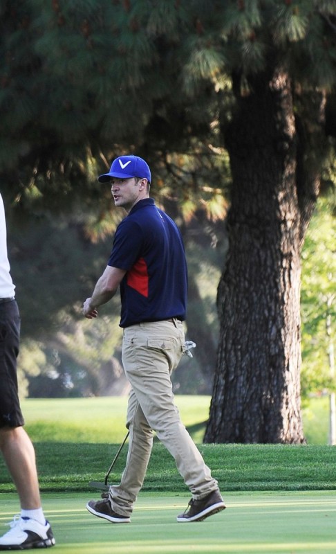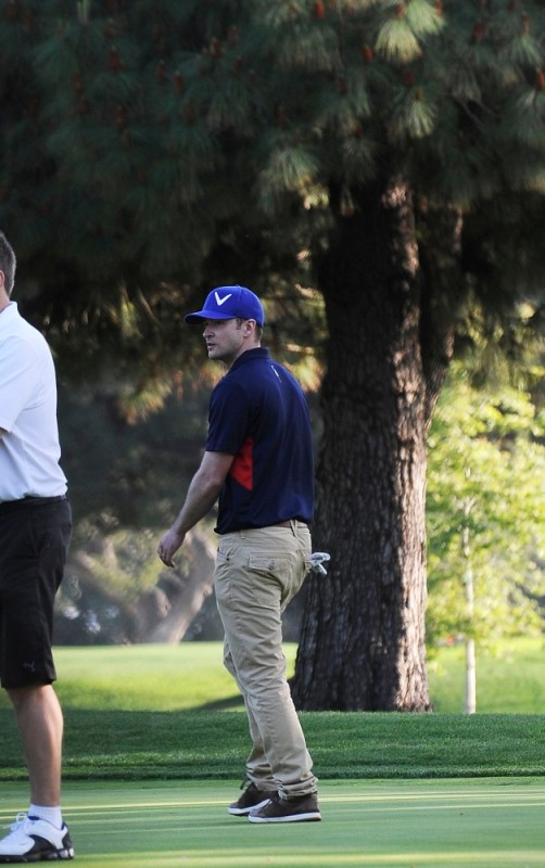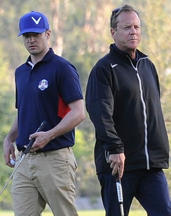 Justin Timberlake played golf with Kiefer Sutherland this weekend in Brentwood. Pipsqueak’s head is extra extra big right now because of how well The 20/20 Experience sold in its first week. And his summer tour with Jay-Z is also doing great numbers. Not bad for an album that was put together in only 20 days. Just 20 days? Well, who’s to say that greatness can only occur after a lengthy gestation? Besides, maybe it was actually gestating for all these years (despite the fact that he’d been wasting our time trying to be Ryan Gosling for so long).
