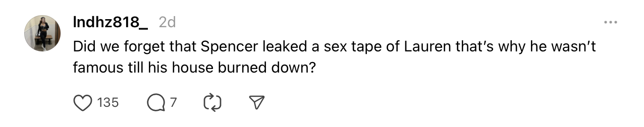 So it’s no wonder that while Spencer’s initial tactics were effective, fans were off put by his calls becoming a bit more aggressive – which was way more in line with the Spencer we knew from The Hills. And it doesn’t seem to be landing well with fans – particularly the ones who knew him when he was on MTV. I think a lot of that has to do with the fact that they’re viewing him as the same old Spencer first, rather than as a father and husband who has suffered devastating loss.