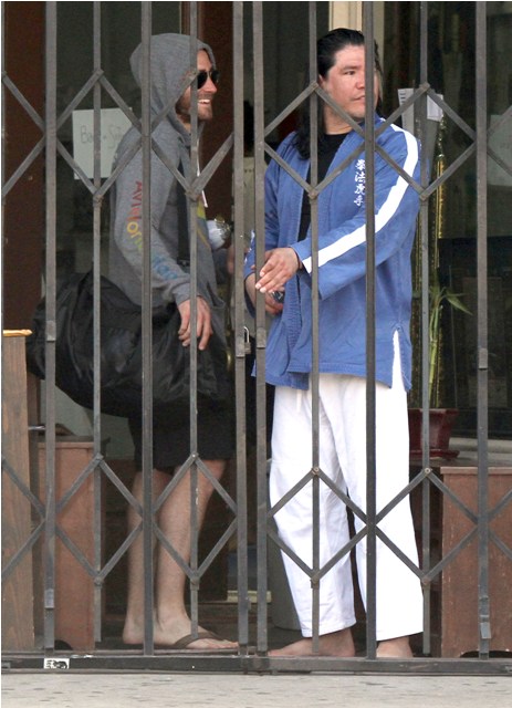 Here's Jakey leaving a karate class in LA the other day. I would LOVE to see viz of Jakey doing karate. LOVE.