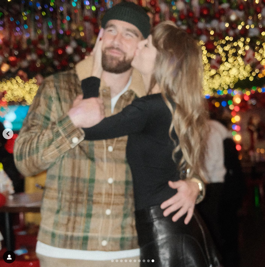 Looks like Travis and Taylor did not go home to sulk after the game but instead hooked up with friends for cocktails and holiday cheer. And those friends shared photos of Taylor and Travis on their accounts. One of those people was Travis’s barber, Patrick Regan, who gave us the money shot. I'm embedding it below, but you can also see it if you flip to the last slide in this Instagram post.