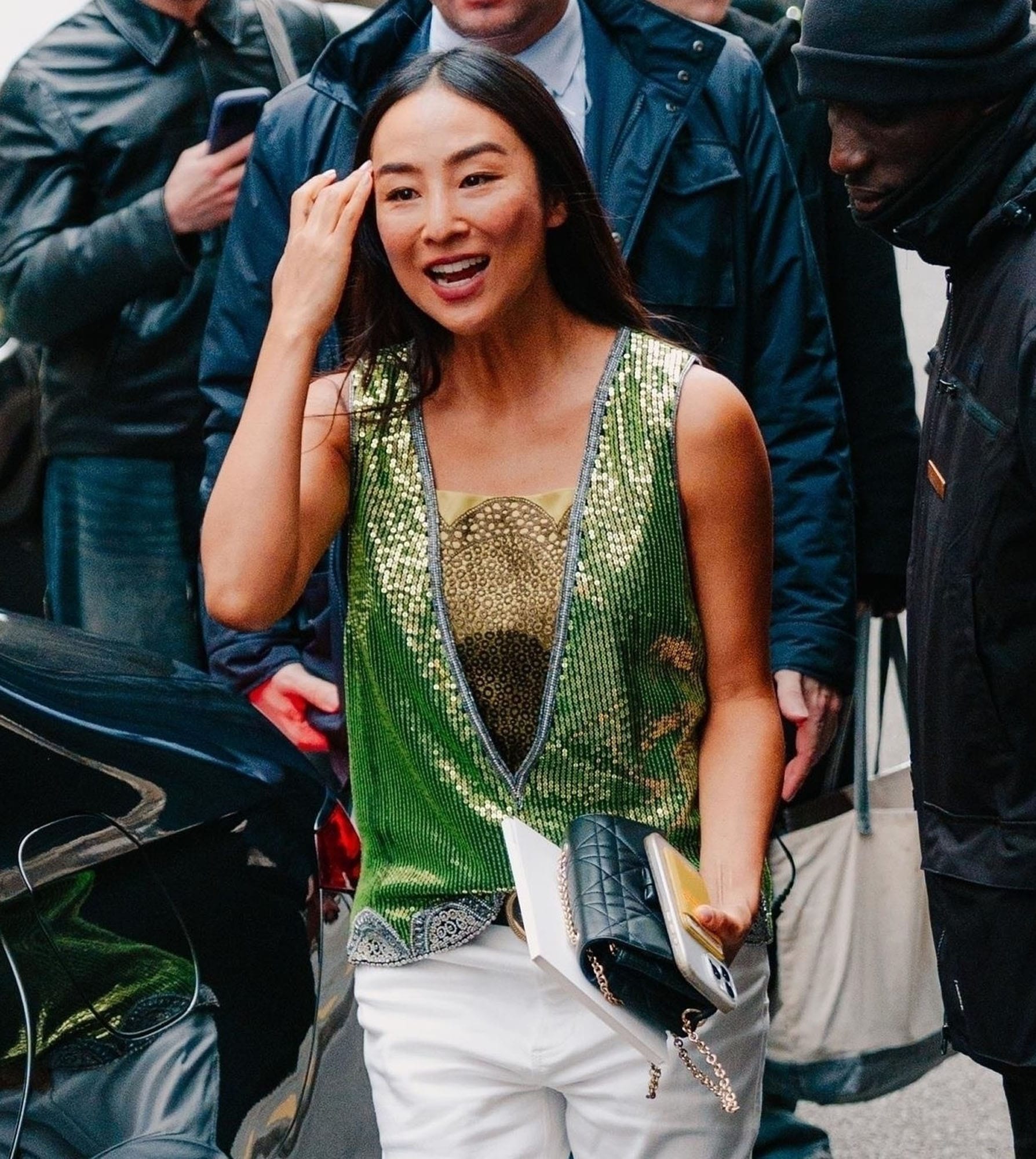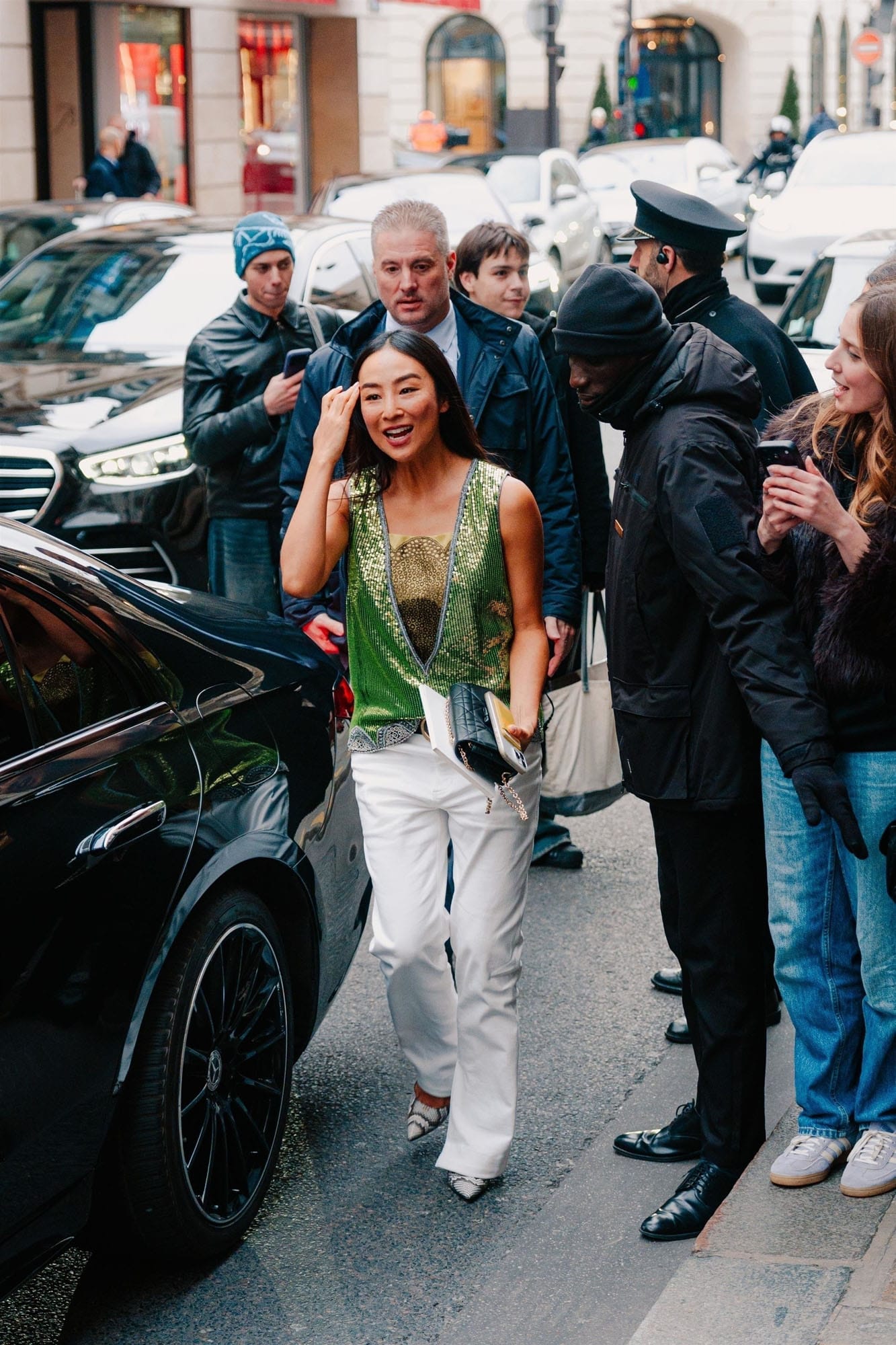 There were several celebrities, in addition to Rihanna, at Dior, including one of Jonathan’s muses, Greta Lee, now a house ambassador. As creative director for the entire house, Jonathan is responsible for something like ten collections a year, so before haute couture, there was also menswear. Greta showed up for the couture show in a look #2 from the menswear runway – a green sequin tank over white jeans. Iconic. Vogue was with her during her trip to Paris and she talked about getting an advance preview with Jonathan the day before, that’s how close they are.