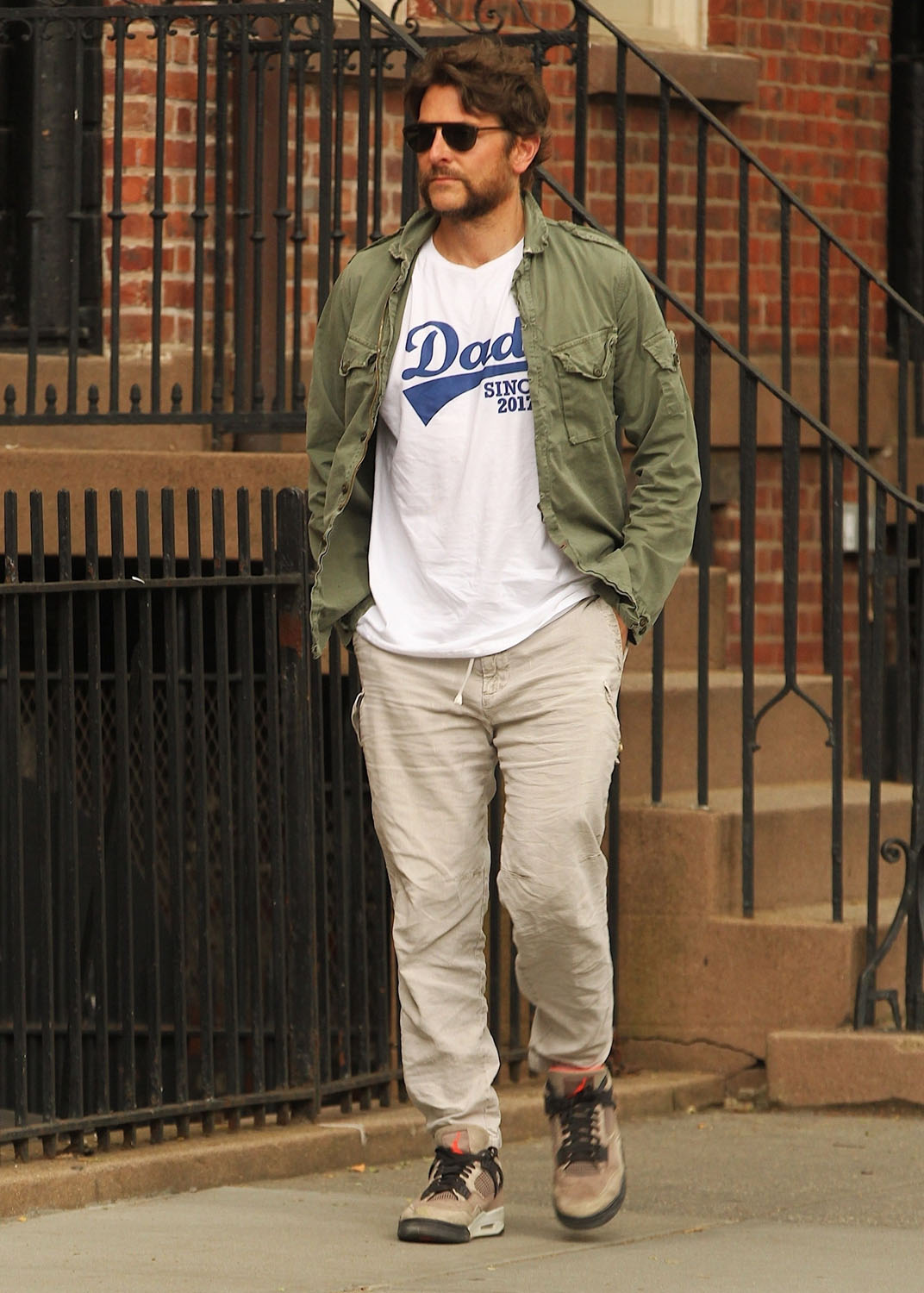 Here are some new shots of him out in New York, continuing to model the new beard style known as the Bradley Cooper or the Cooper, but I do think it might be growing in a bit and I can’t believe I’m about to say this but if you are the father inventor of a new style, you need to maintain it for longer.