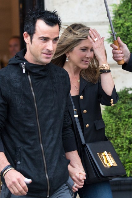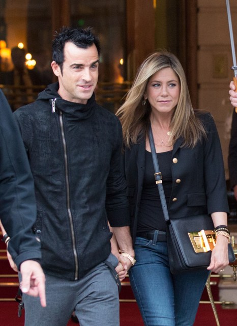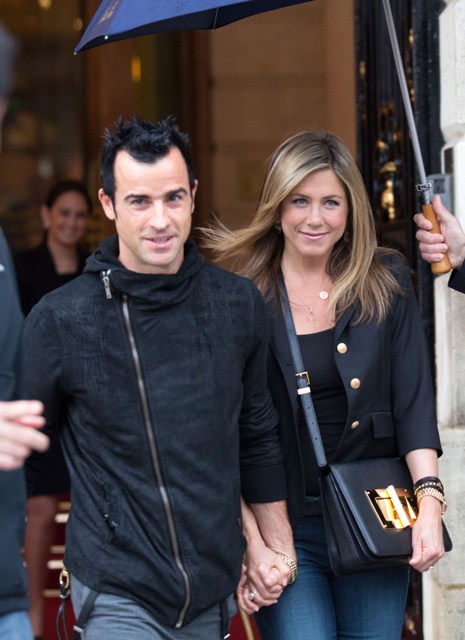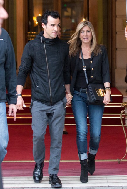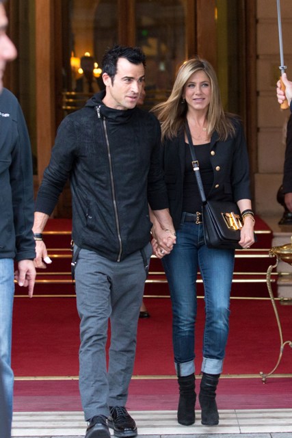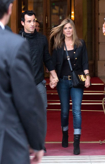 Jennifer Aniston and Justin Theroux, who called himself “the luckiest guy in the world” last week went out for dinner in Paris last night. Jen’s jeans look similar the pair she wore the day before when they were sightseeing and shopping. Same pair? You all are way more eagle-eyed than I am but to me, it seems like it. I dig this. That she might be a light traveller. That she might even be a lighter traveller than he is.