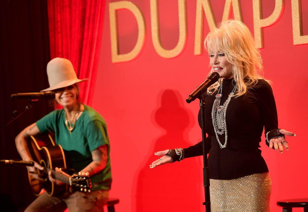 I posted last week about Dolly working on the Dumplin’ soundtrack to be released on November 30. She wrote six original songs for the movie. Yesterday there was a press event to promote the music. Dolly sang “Girl in the Movies” for a group of journalists and, Dolly being Dolly, she was very clear about her intentions: