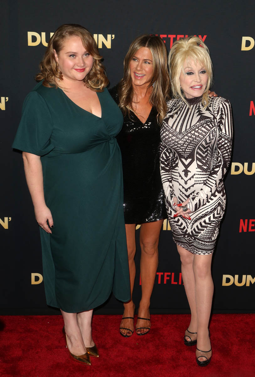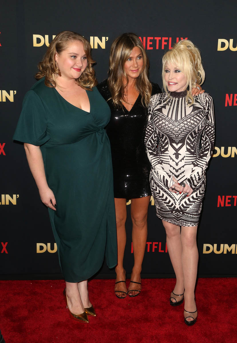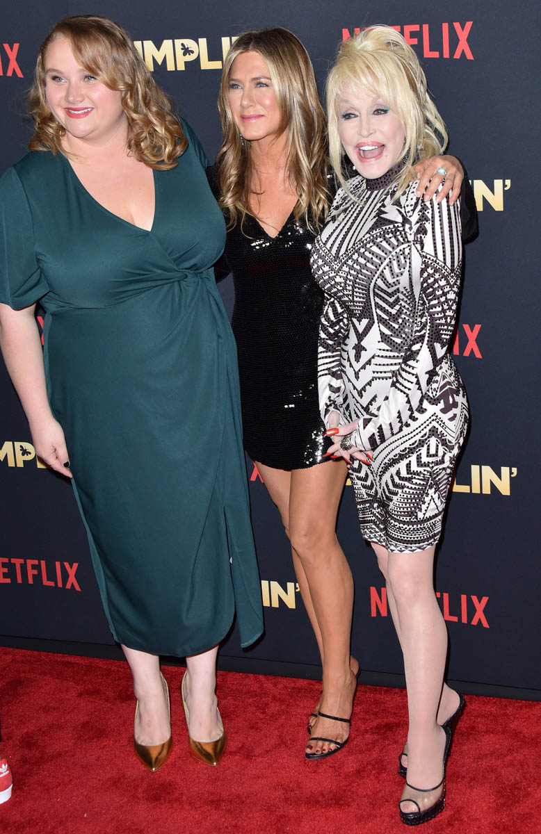 Here are Dolly Parton and Jennifer Aniston, along with Danielle Macdonald, at the premiere of Dumplin’ last night. As we’ve seen, since they’re the marquee names, Dolly and Jen have been leading most of the promotion for Dumplin’ so far. I’m curious though, once people start seeing the movie, which is available on Netflix now (I’m planning a mac & cheese dinner for tonight while I watch), whether or not Danielle is going to start trending on social media, the way it happened for Lana Condor and Noah Centineo a few months ago when To All the Boys I’ve Loved Before was released. If you’ve seen Patti Cake$, you’re already familiar with Danielle’s work. She’s delightful. And Dumplin’ is her story. Dumplin’ is the one who’s asking the questions, who’s challenging where she belongs, and who gets to say if she belongs. It’s her identity that is centered. And so I imagine that this is the plan – that once people start seeing the movie, and if lives up to the promise of that trailer, she’s the one who’ll move into spotlight in the coming days. Let’s circle back to this on Monday.