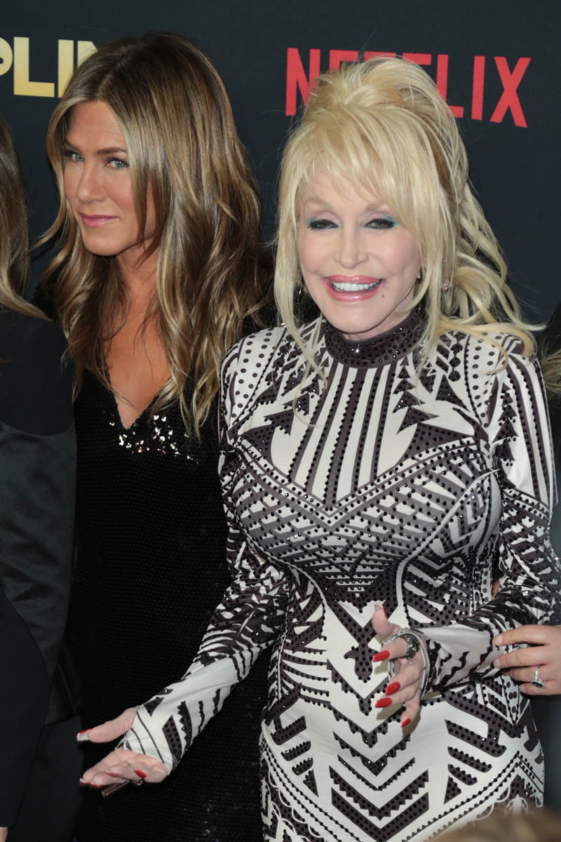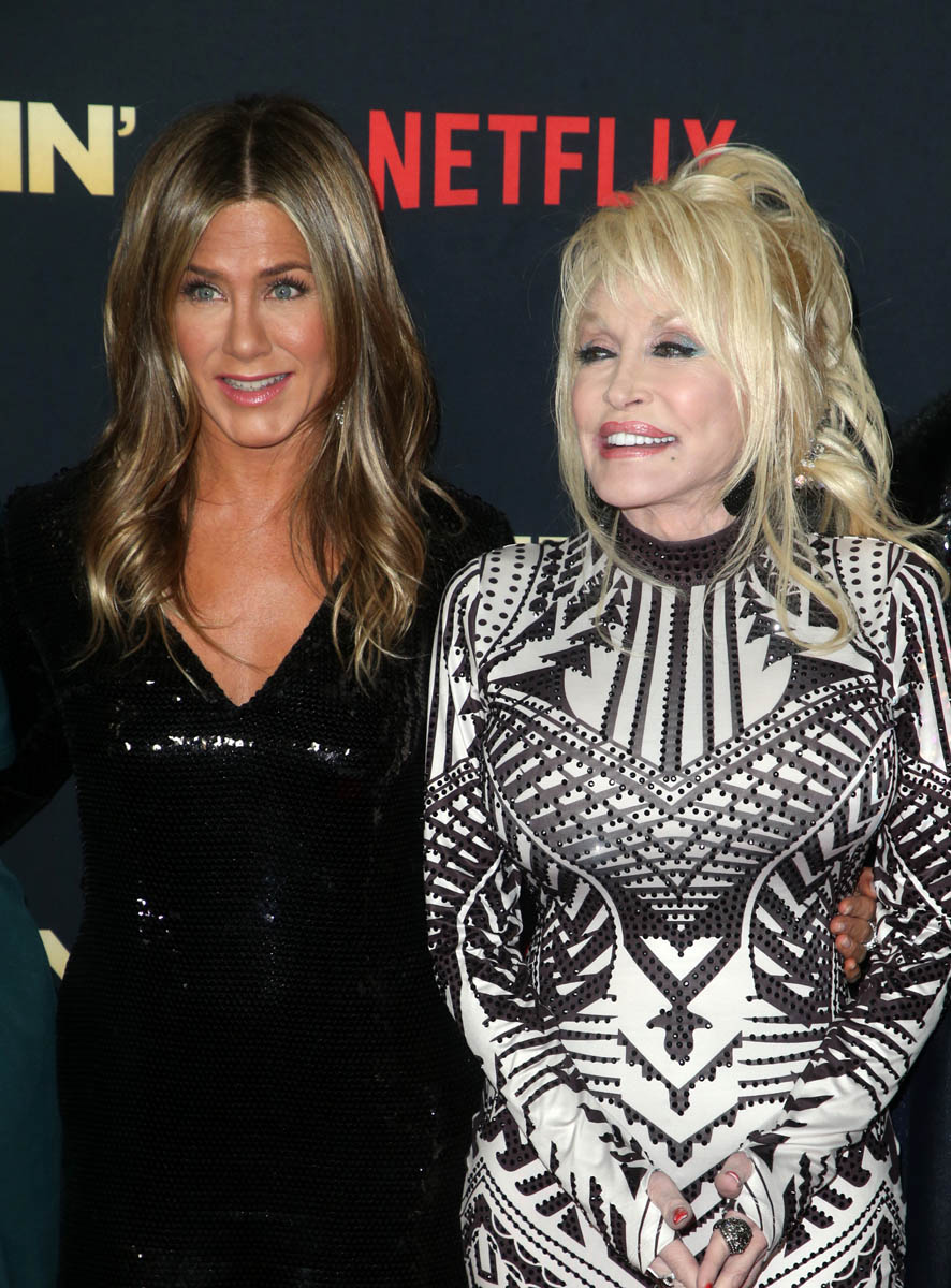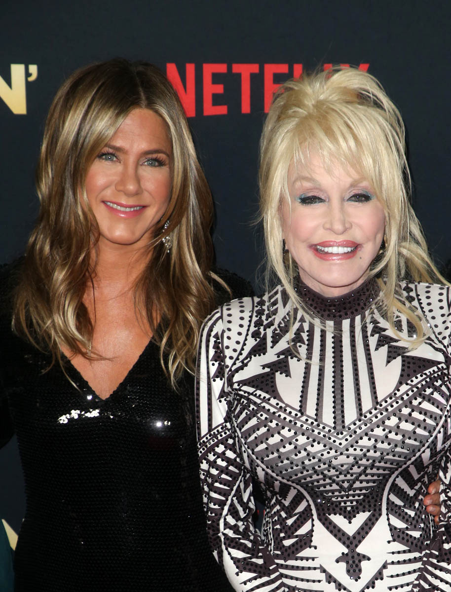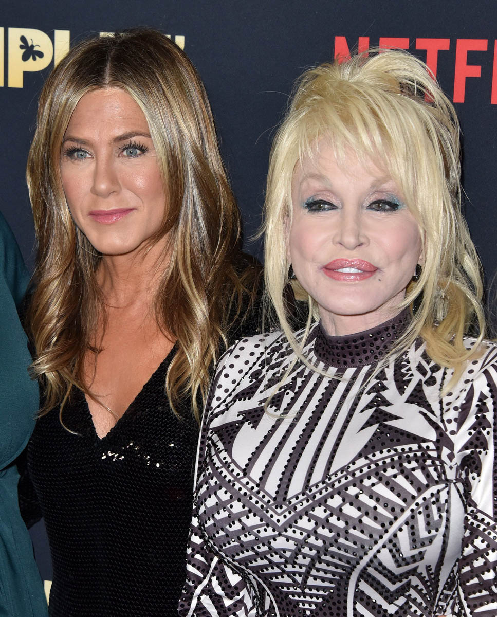 For now, it’s the Dolly and Jen show. They’ve been interviewing each other, they were on James Corden together. Talking about Jen’s dog, Dolly, named after Dolly Parton.